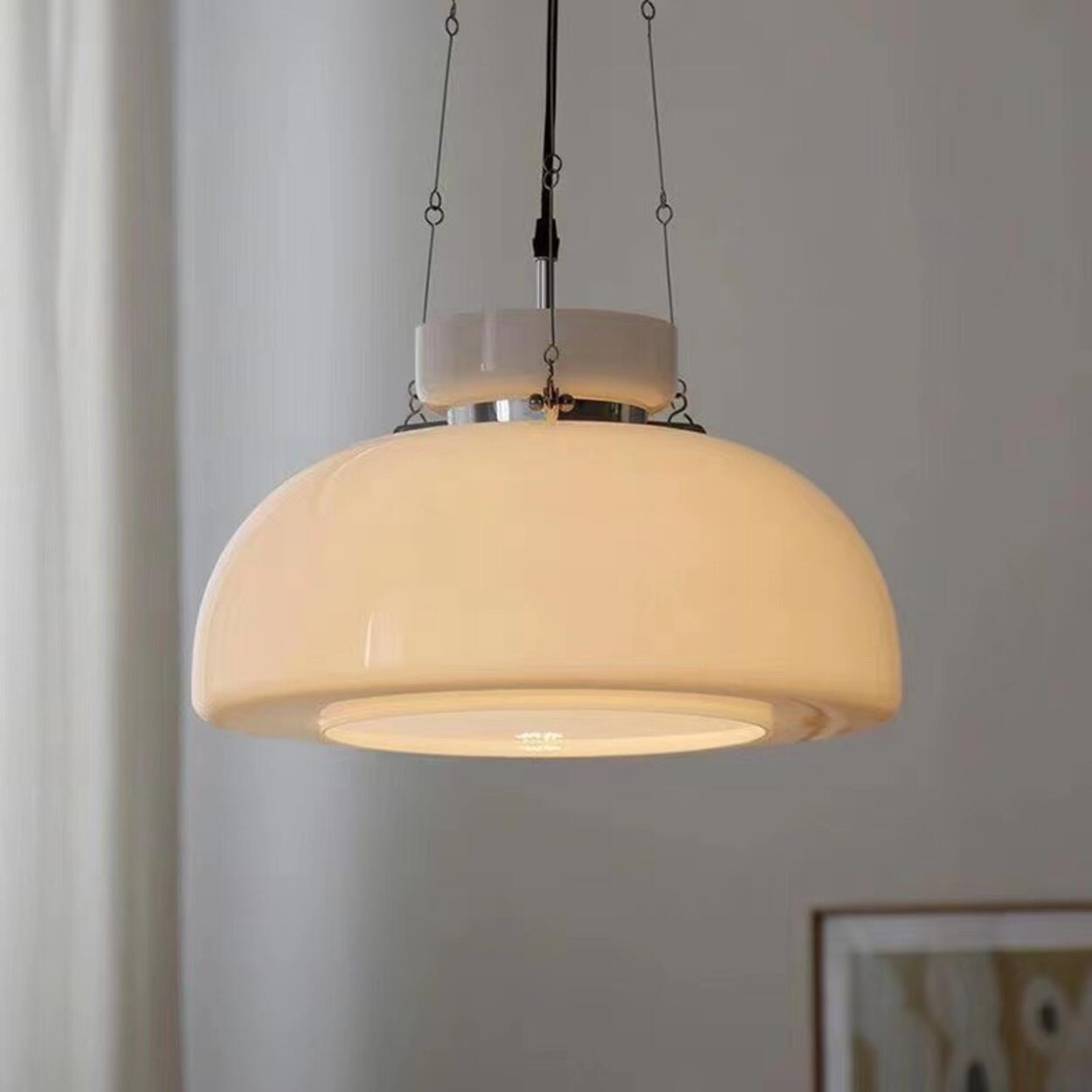 This modern and simple white glass pendant light adds a touch of elegance to your kitchen with its unique dome shape. The small and exquisite design not only saves space, but also fits perfectly into any home style. It creates a comfortable dining environment through delicate light, and is also a unique decorative artwork.
