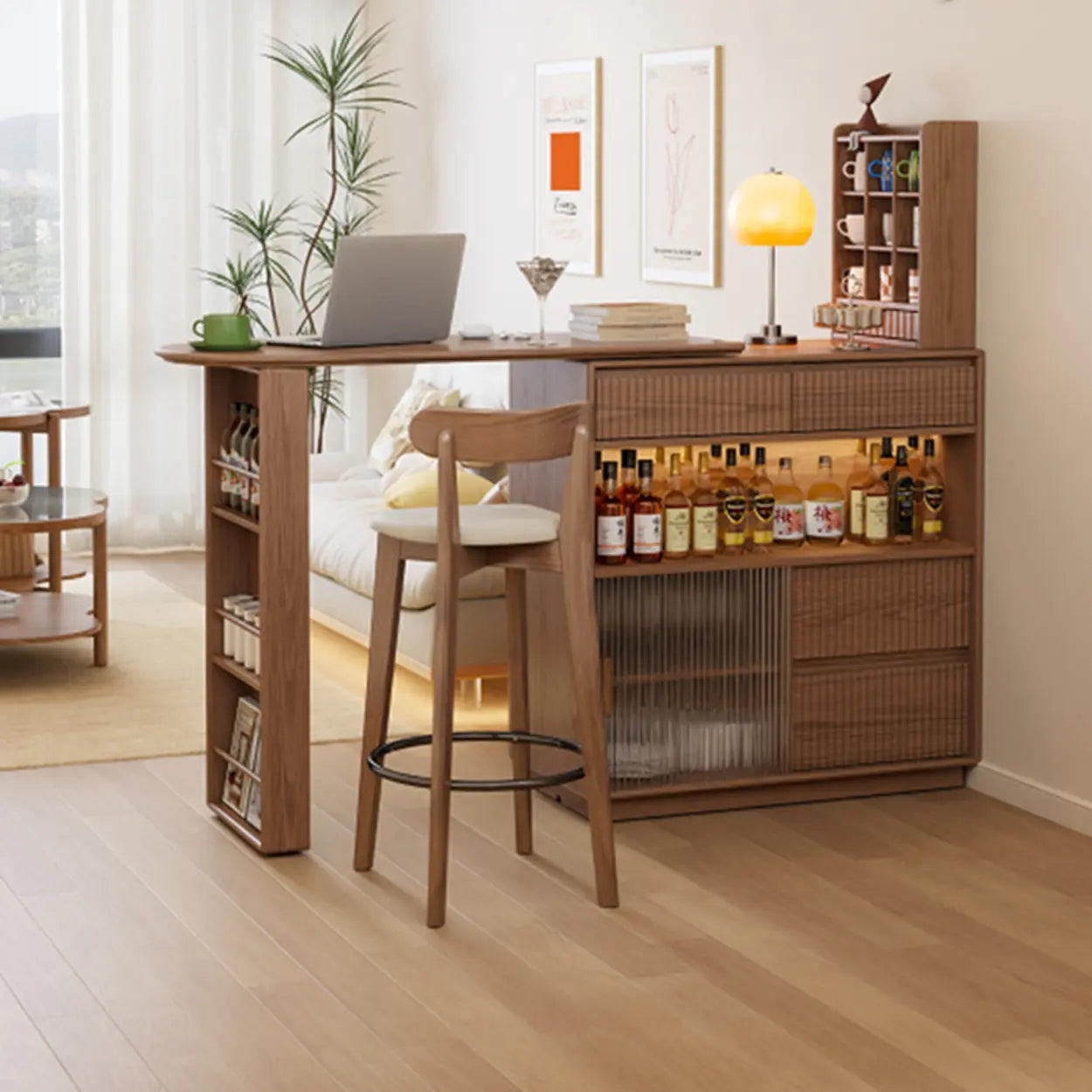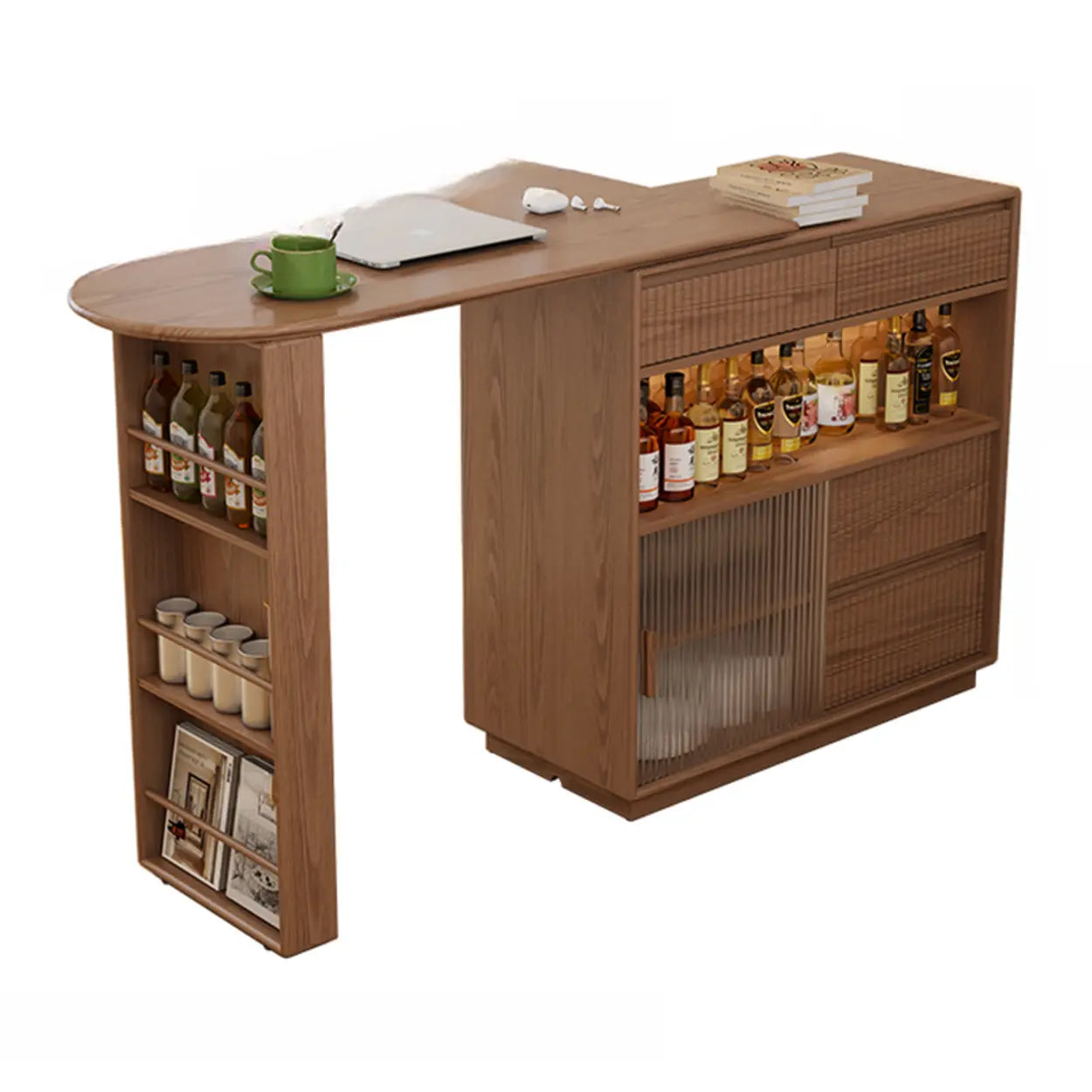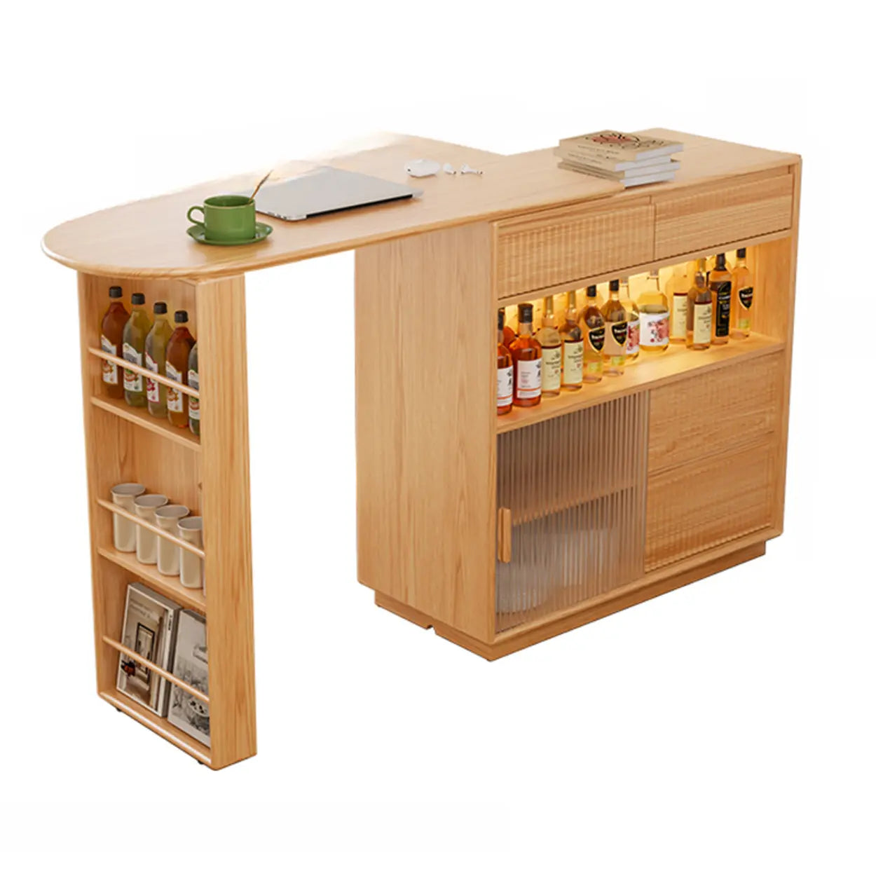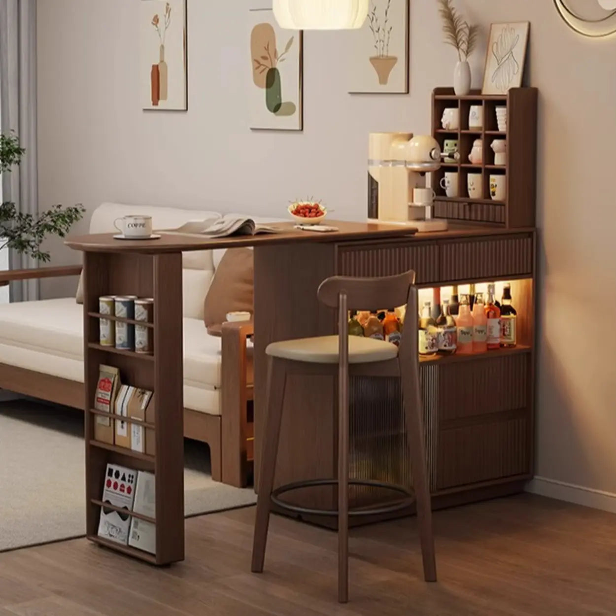 Modern Multifunctional Home Bar Table with Storage Shelves
