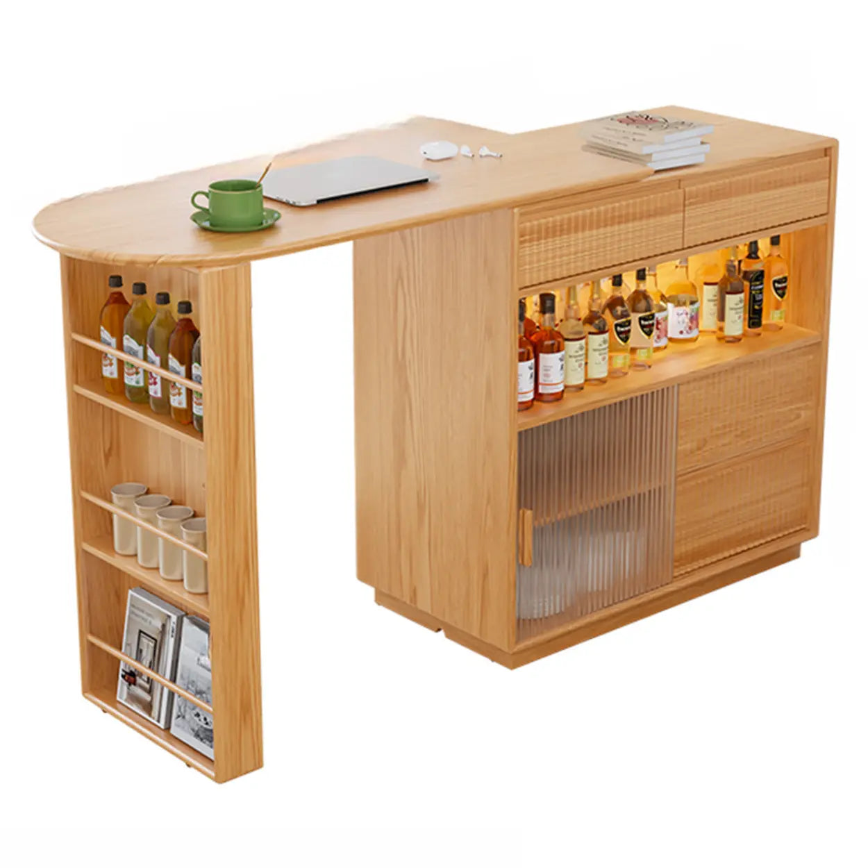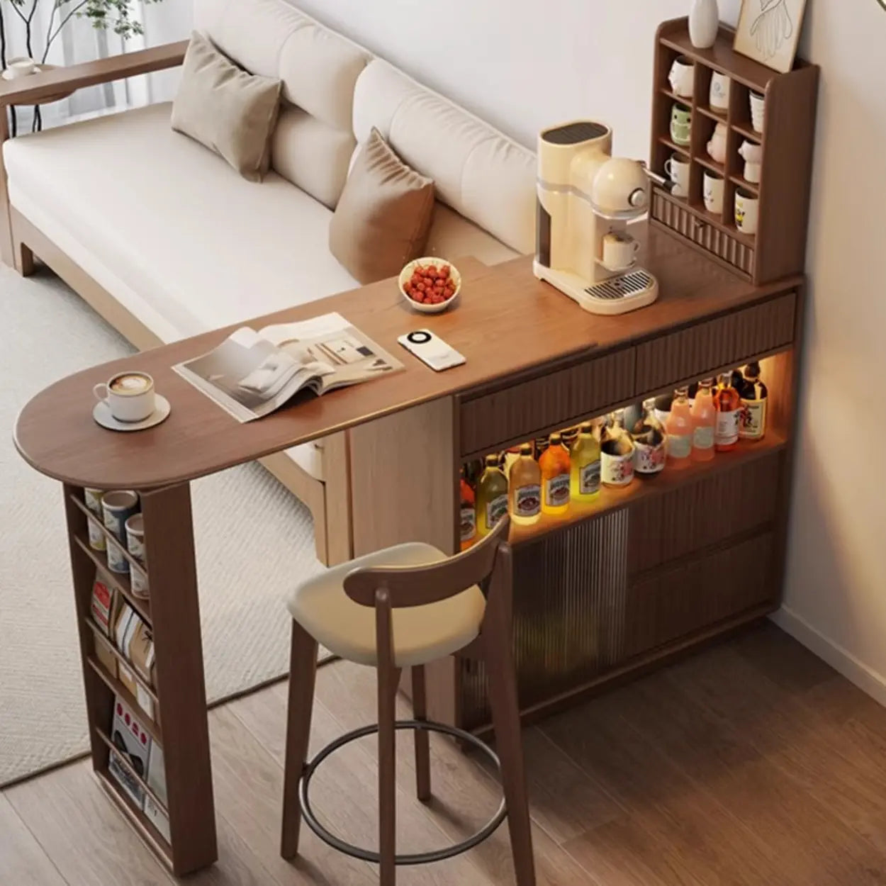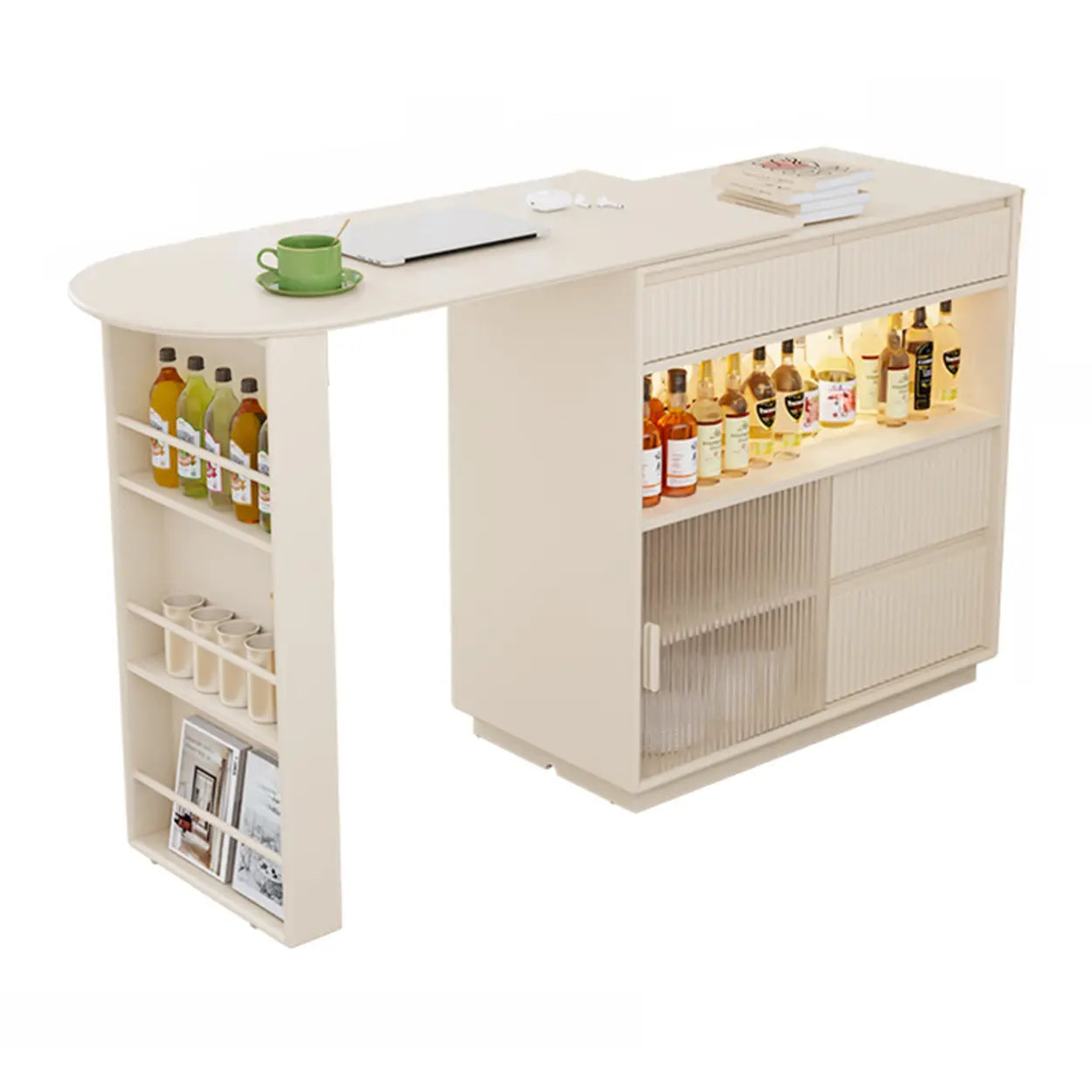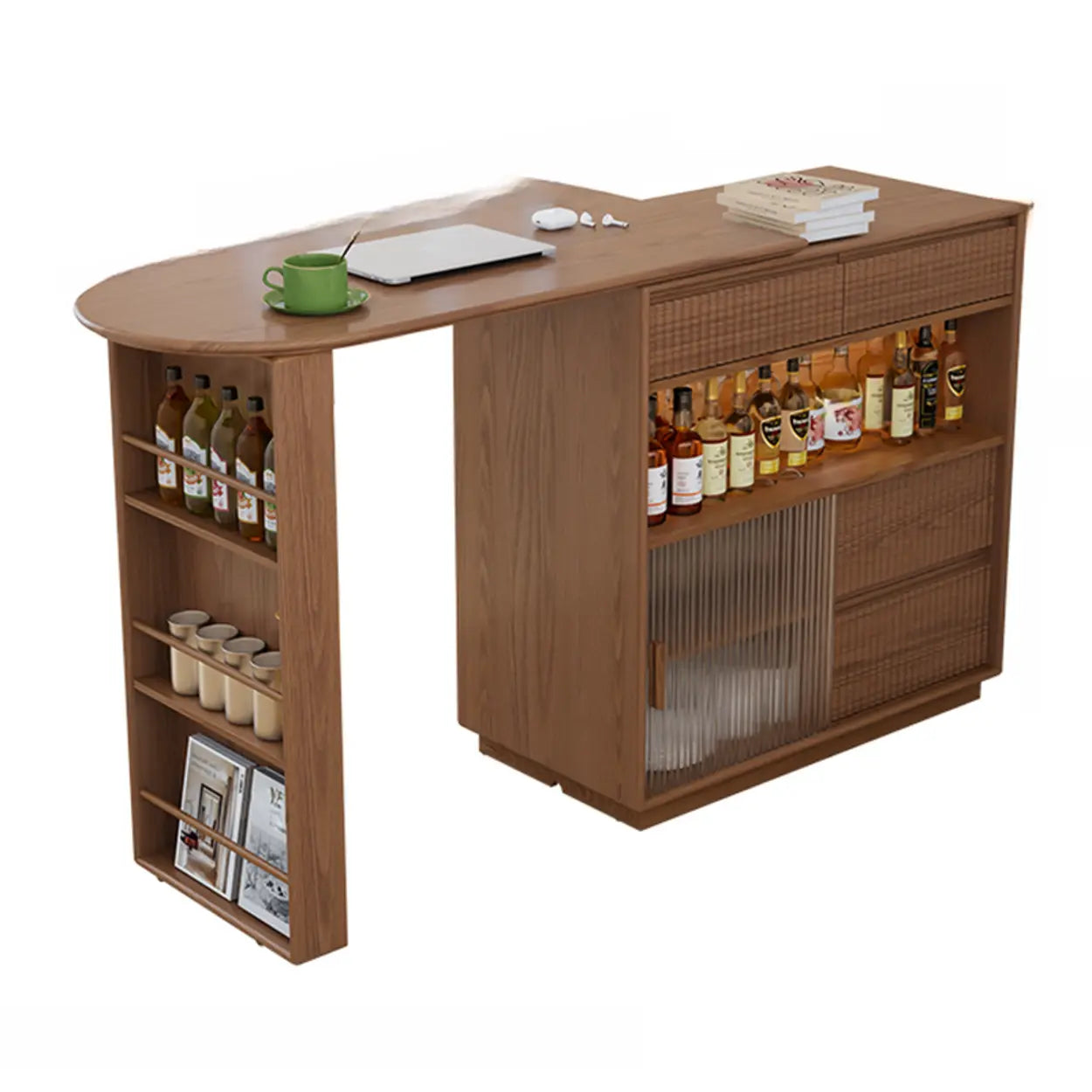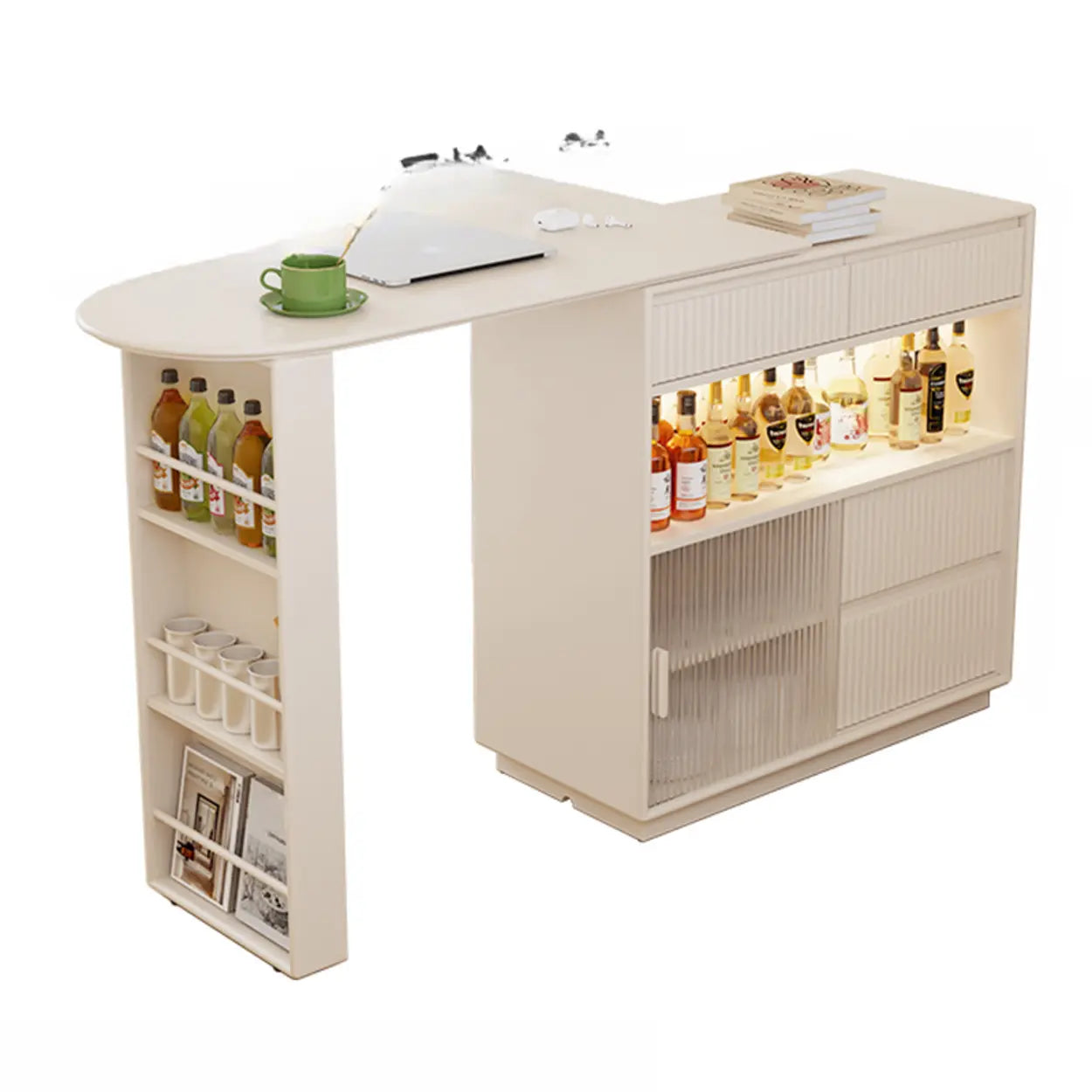 Modern Multifunctional Home Bar Table with Storage Shelves