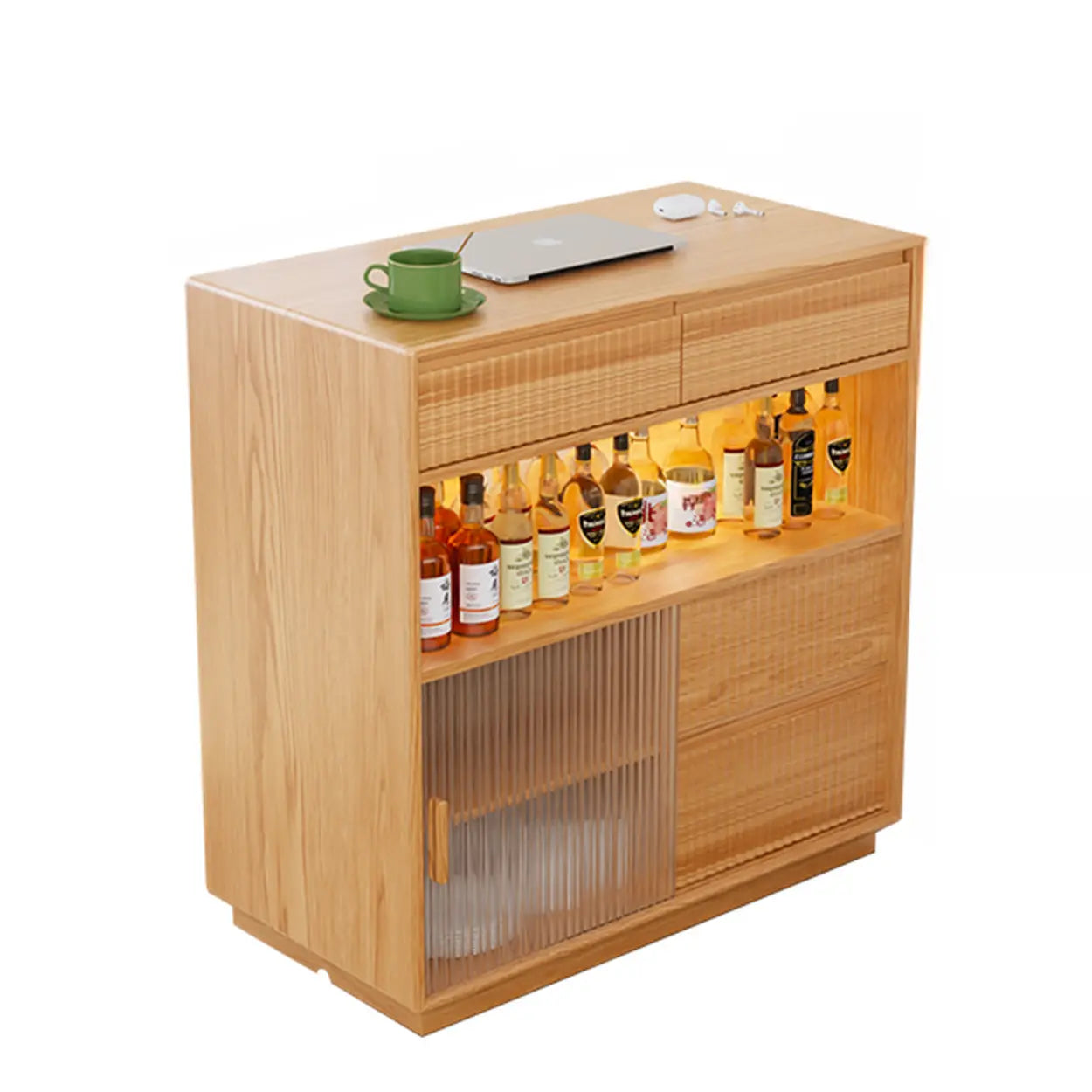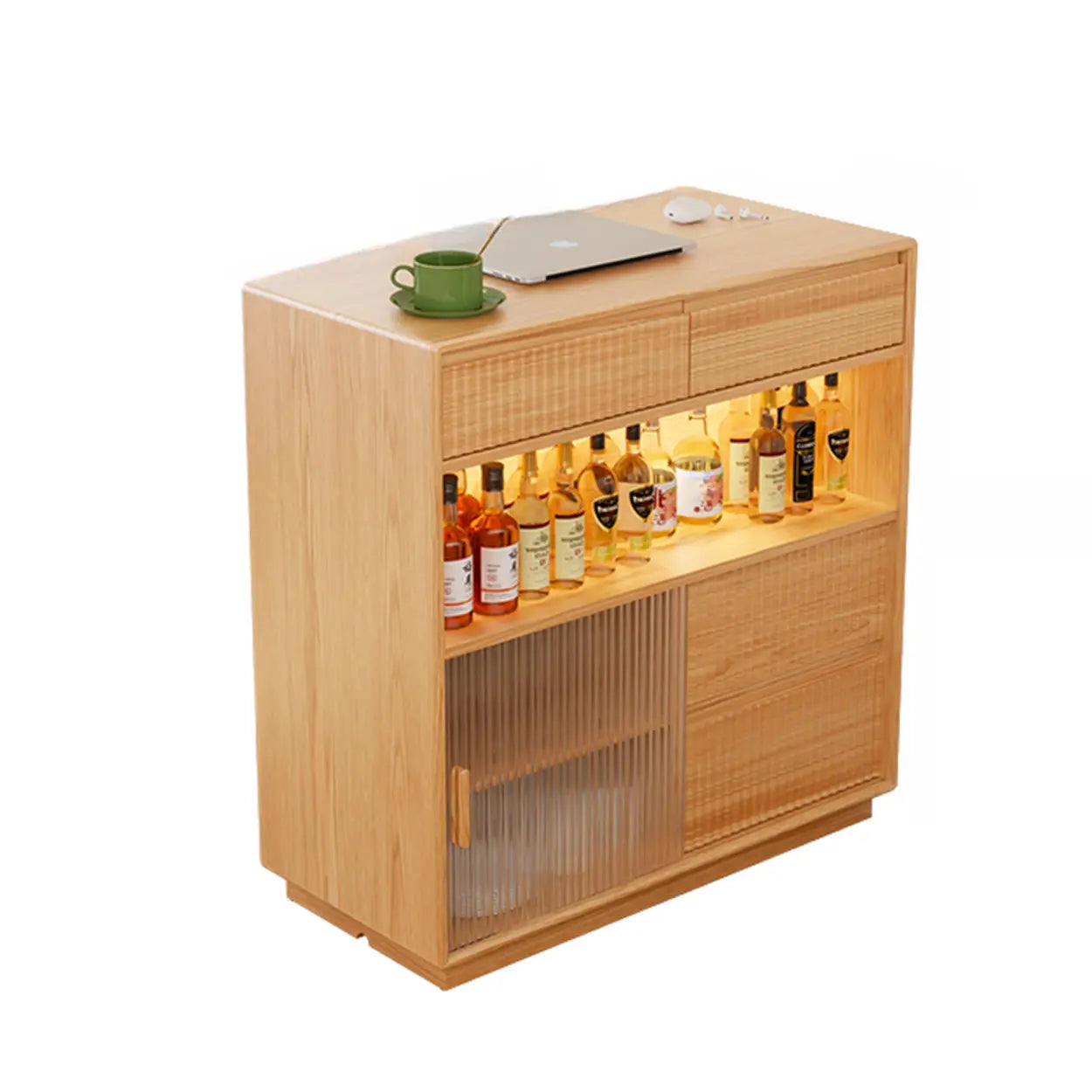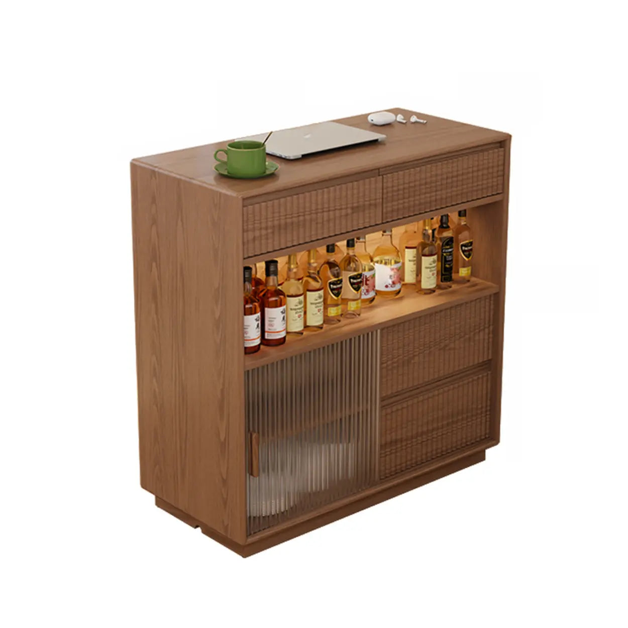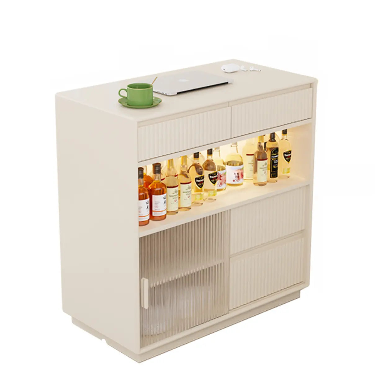 Modern Multifunctional Home Bar Table with Storage Shelves