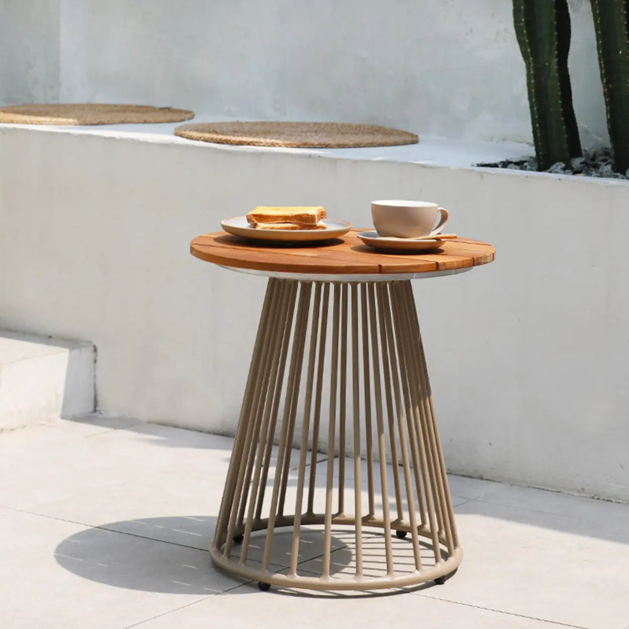 The lightweight aluminum alloy base successfully resists rust and daily wear from humid outdoor environments. This sturdy light terracotta foundation prevents the table from wobbling while you rest your beverages outside.