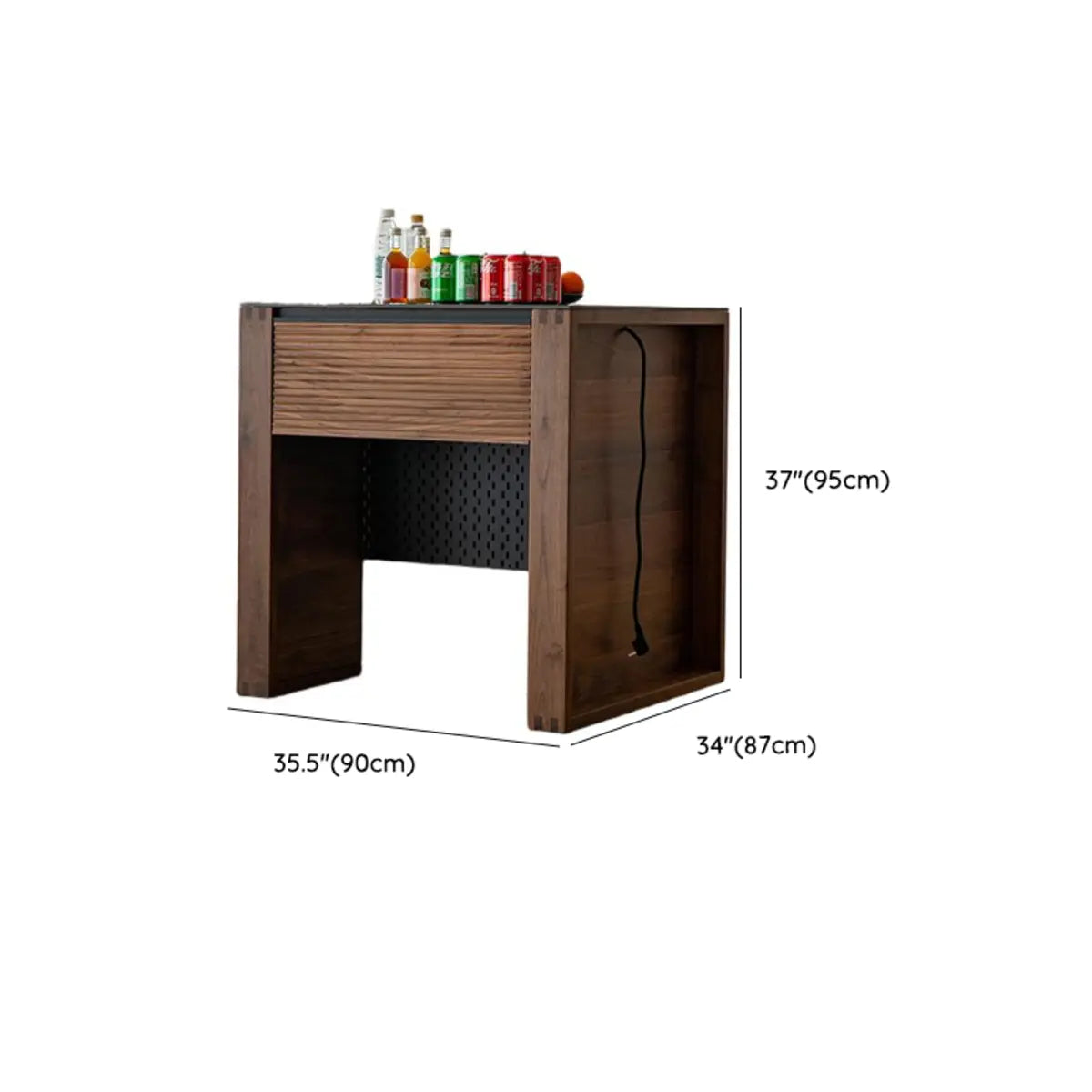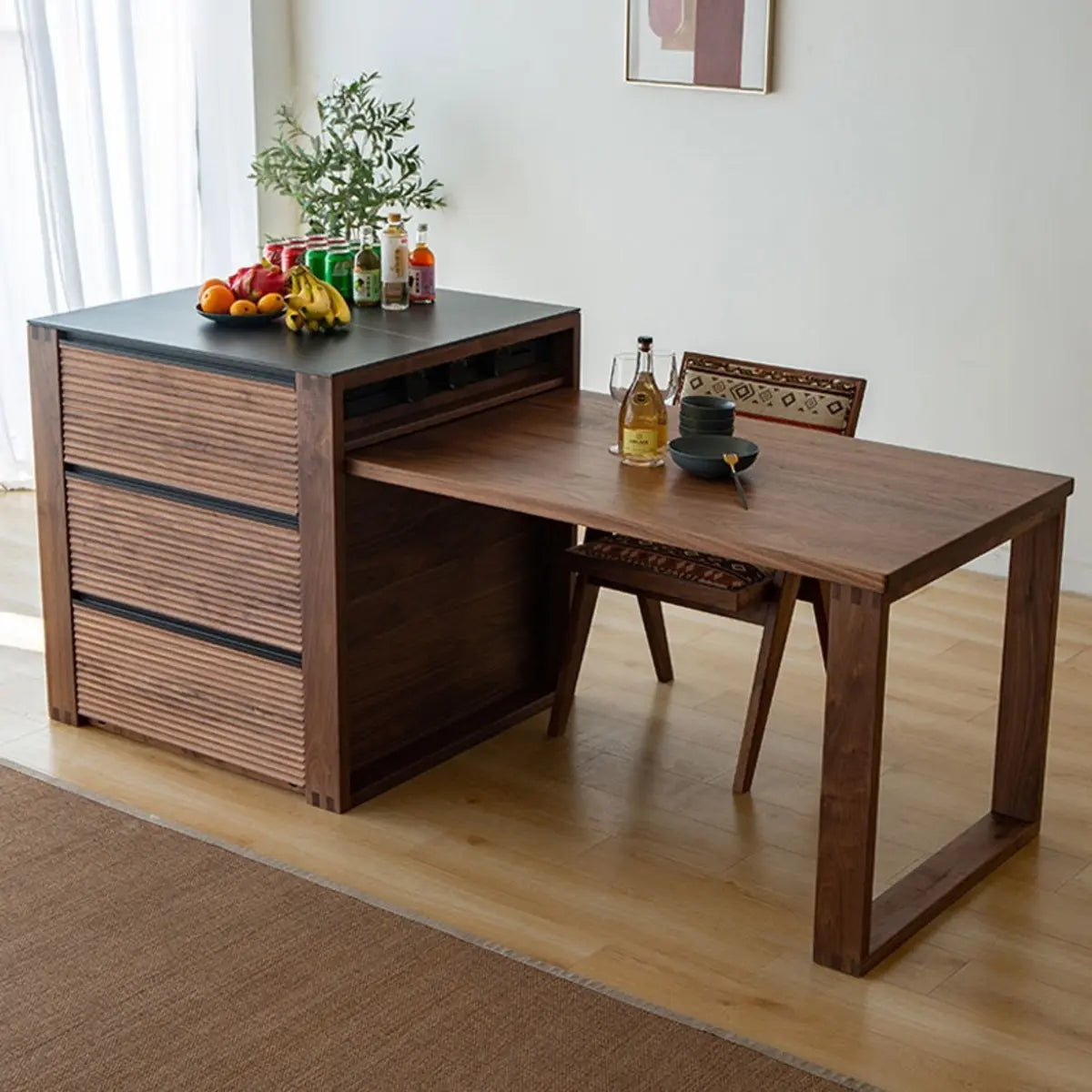 Modern Rectangular Walnut Kitchen Island with Drawer