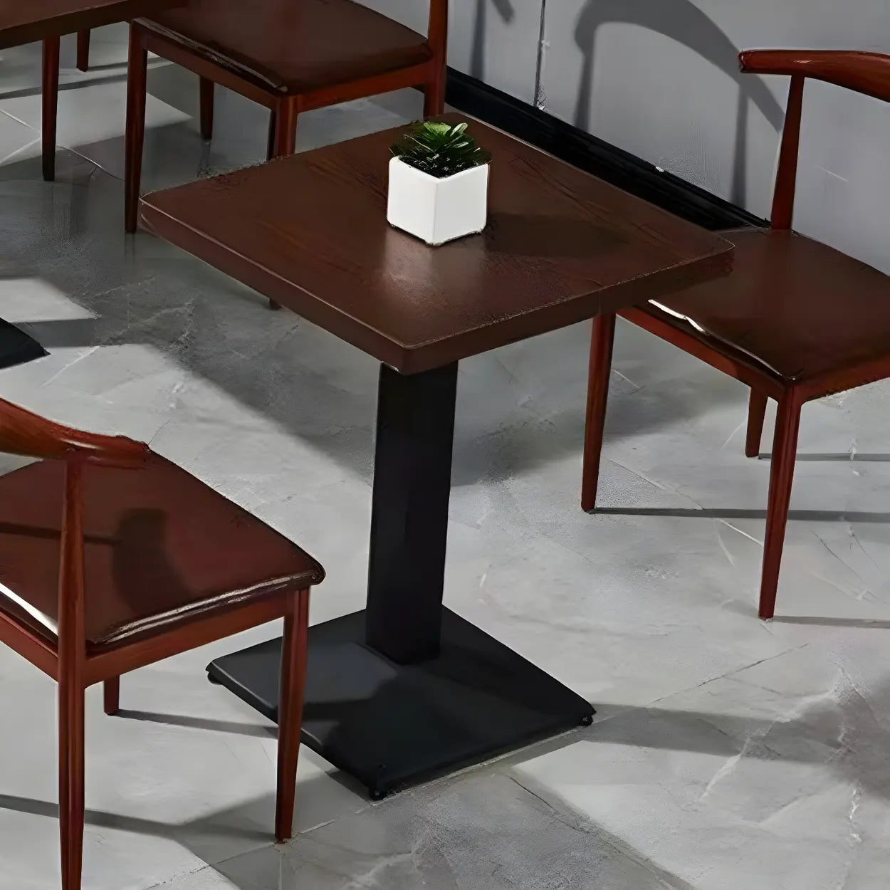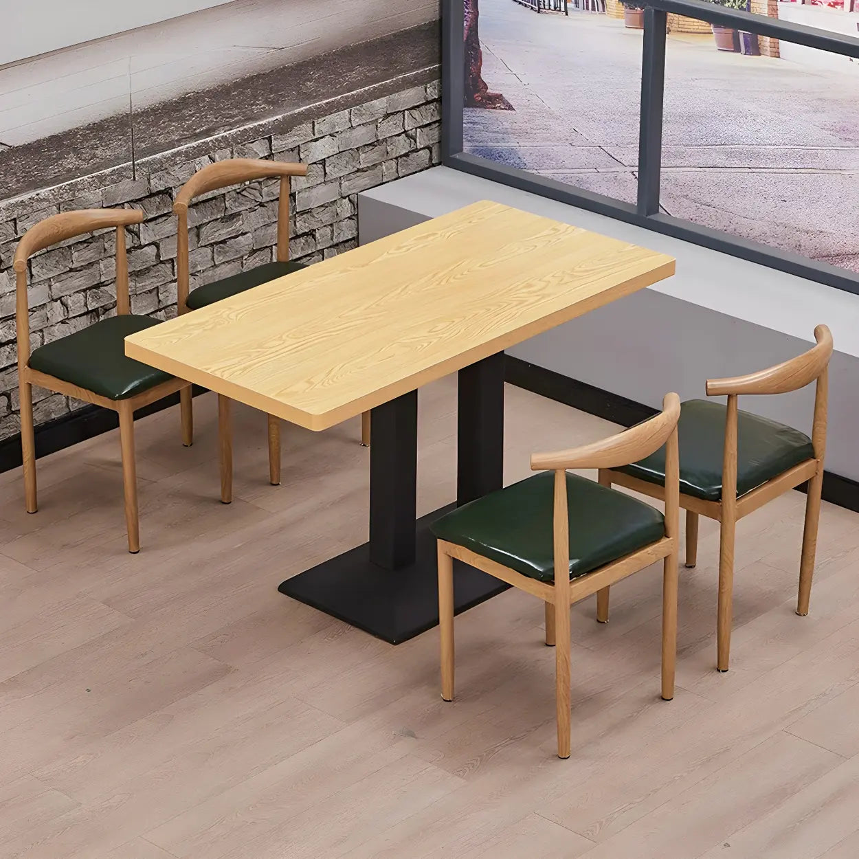 This modern rectangular dining table blends fashion and practicality. Its natural wood tabletop and sturdy black metal base are durable and comfortable. Plus, elevating both aesthetics and functionality, this table suits family meals or business meetings.