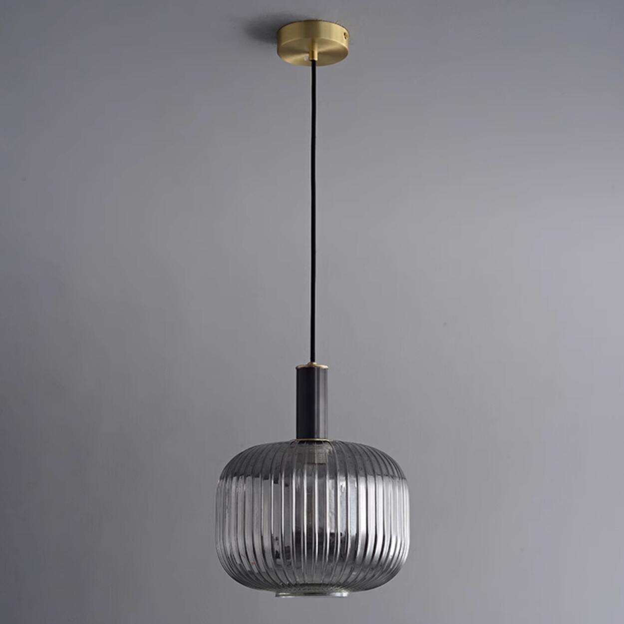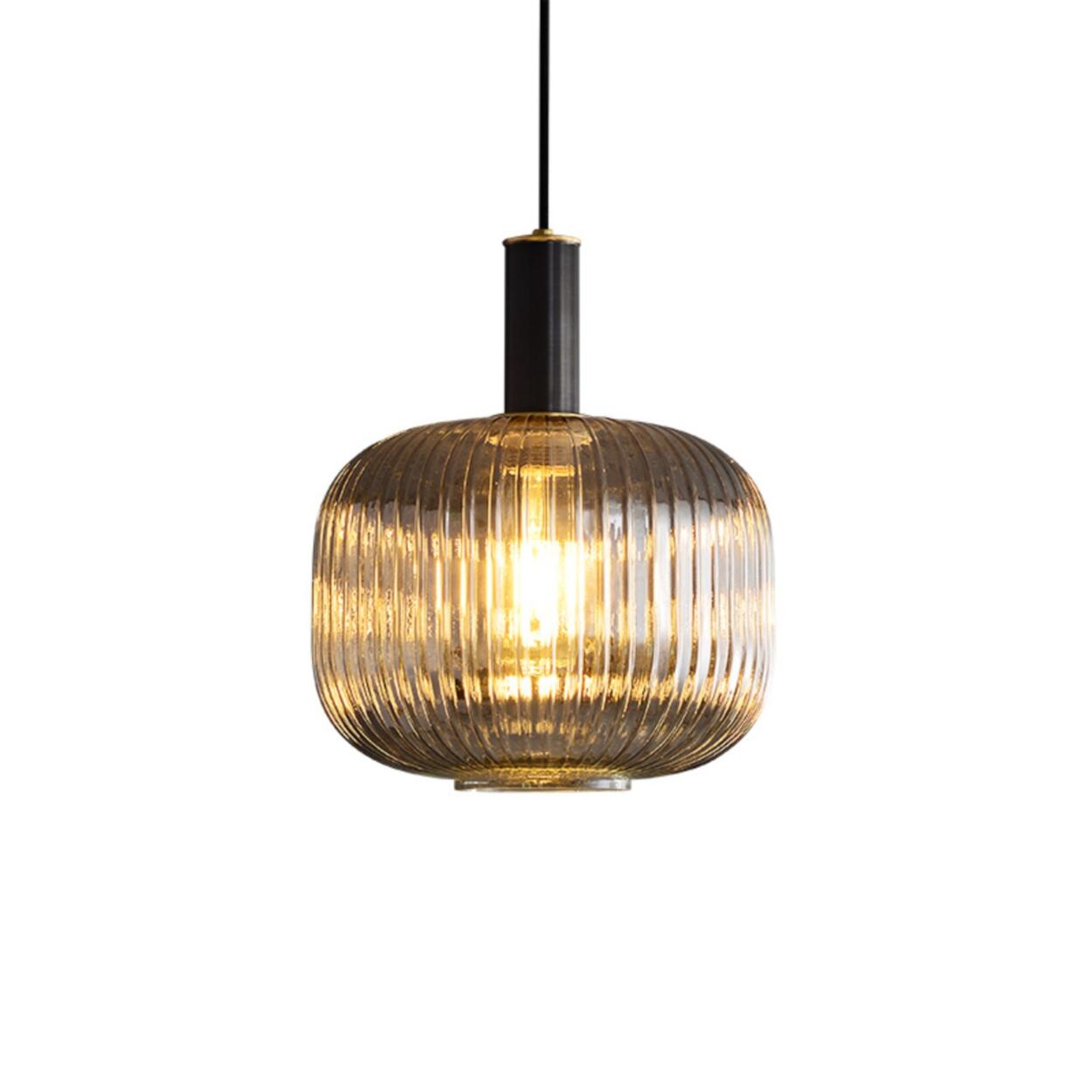 Modern Ribbed Clear Glass Black Cylinder Pendant Light