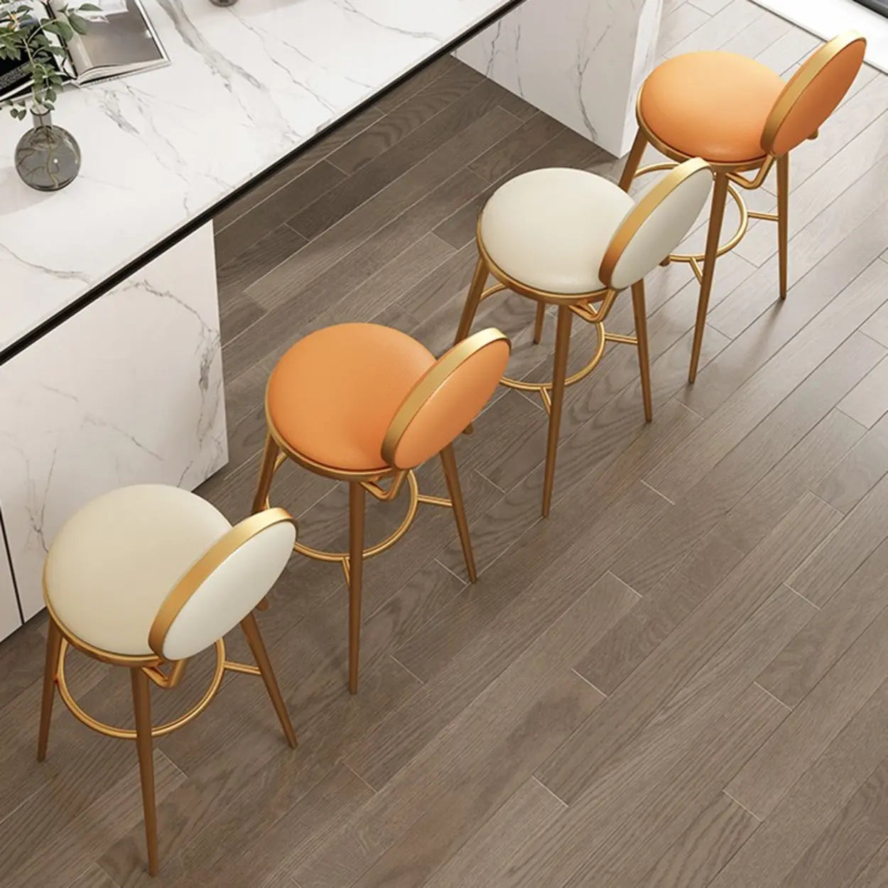 This modern round-back metal bar stool offers both style and comfort, suitable for kitchens, bars, or dining spaces. The sturdy build and choice of color options help users match their stools to different decor needs.