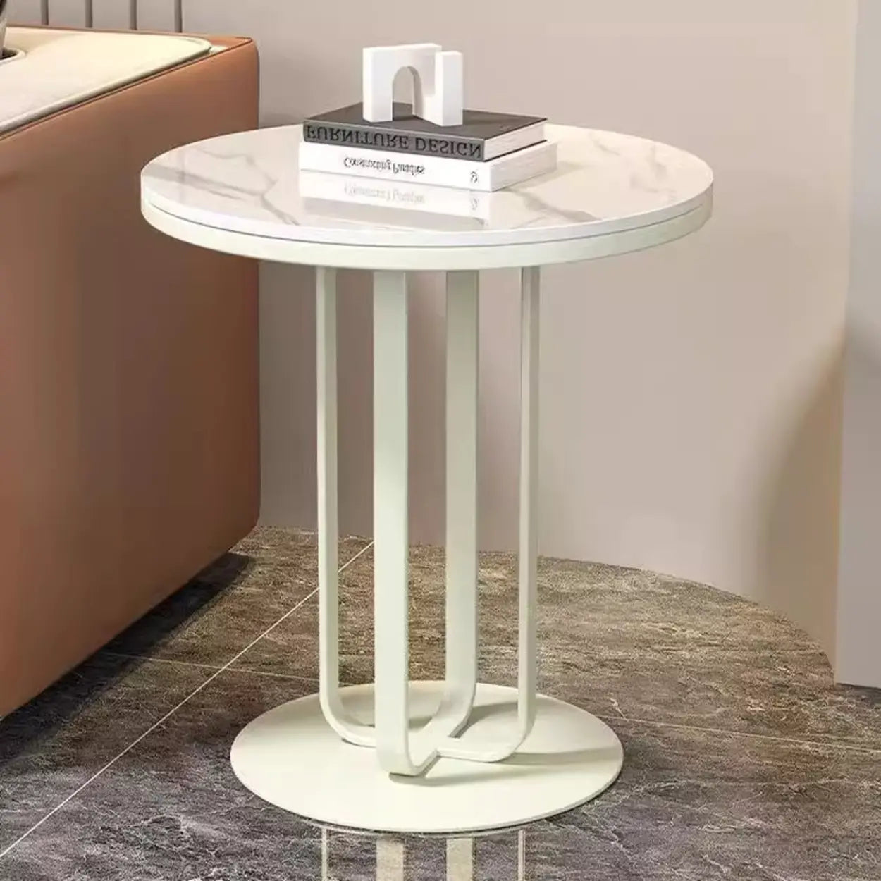 Modern Round Side Table with Sturdy Metal Base and Marble Top