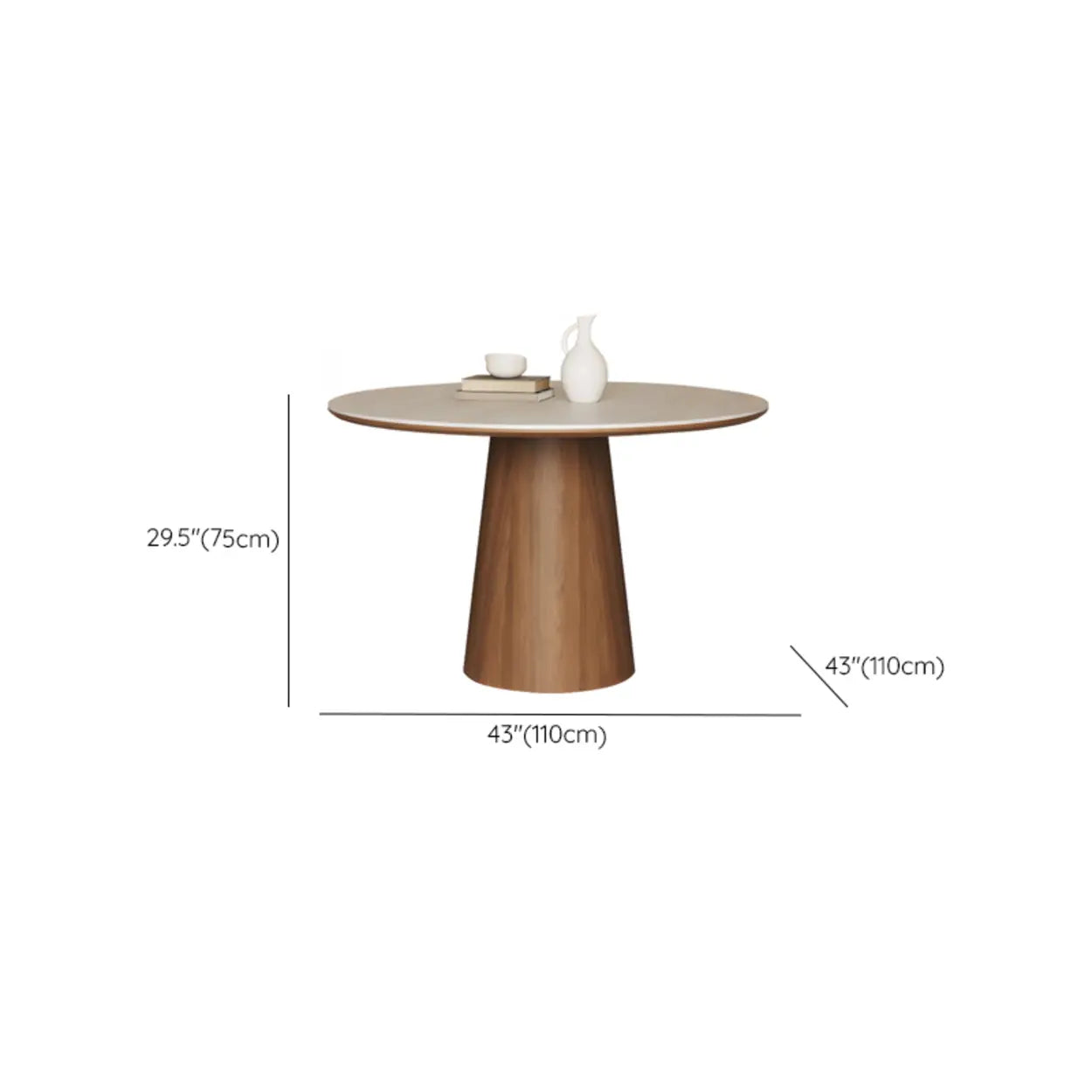 Modern Rustic Wood Pedestal Round Beige Stone Dining Table