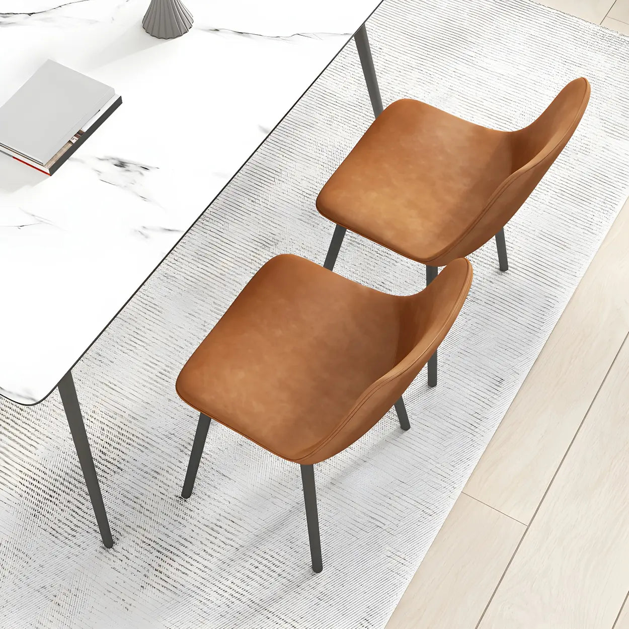 This modern PU leather chair is suitable for dining rooms or workspaces. Designed with a sleek profile, these chairs blend in with various decor styles and provide practical seating for daily use.