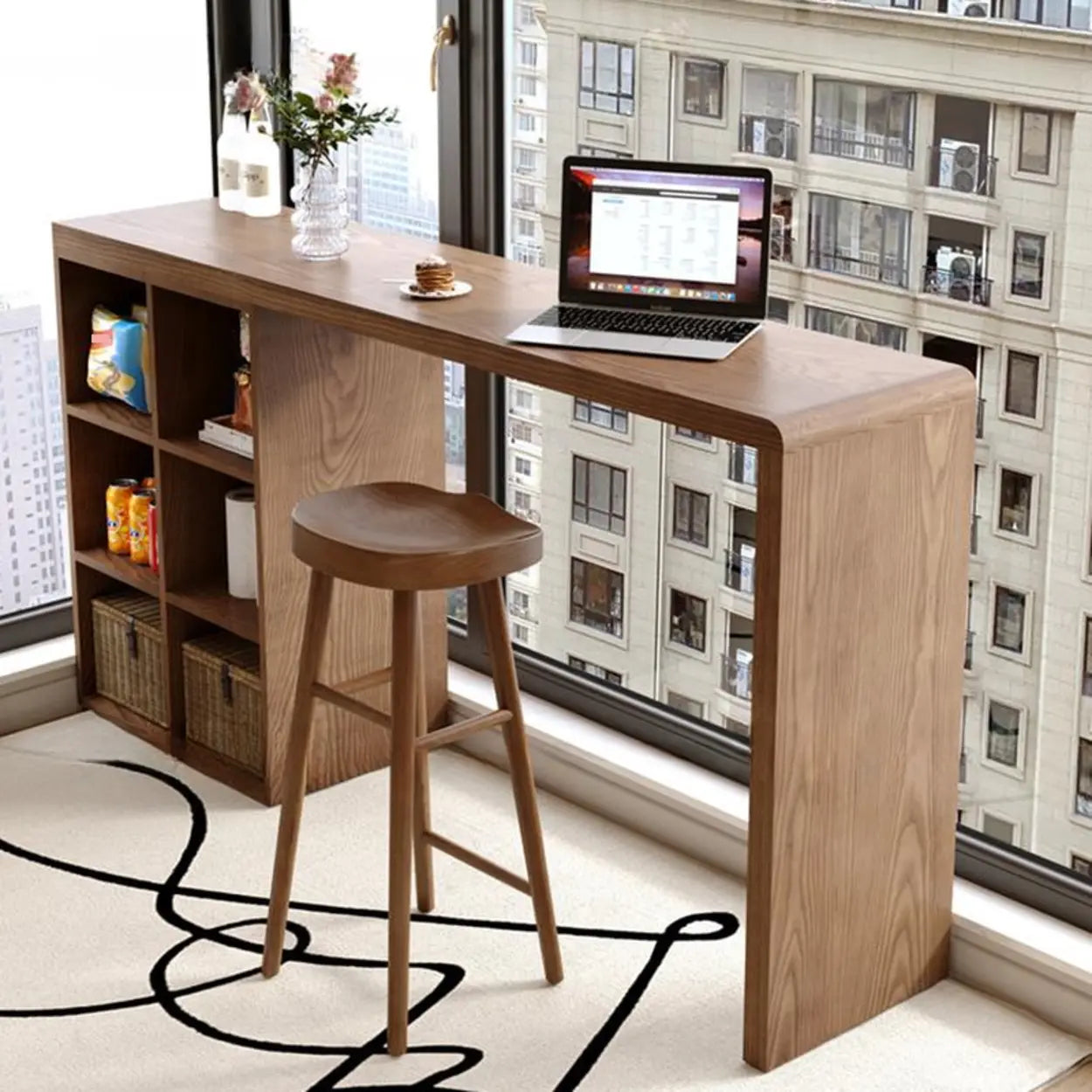Upgrade your home or office with this modern bar table. Designed to save space, it fits perfectly by windows or small corners. The built-instruments help keep your essentials organized while adding a stylish touch to any room. Perfect for work, dining, or leisure.