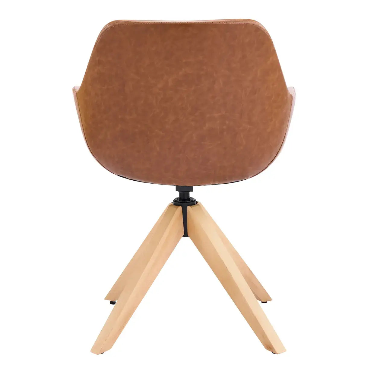 Modern Swivel Brown Faux Leather Arm Dining Chair Set of 2