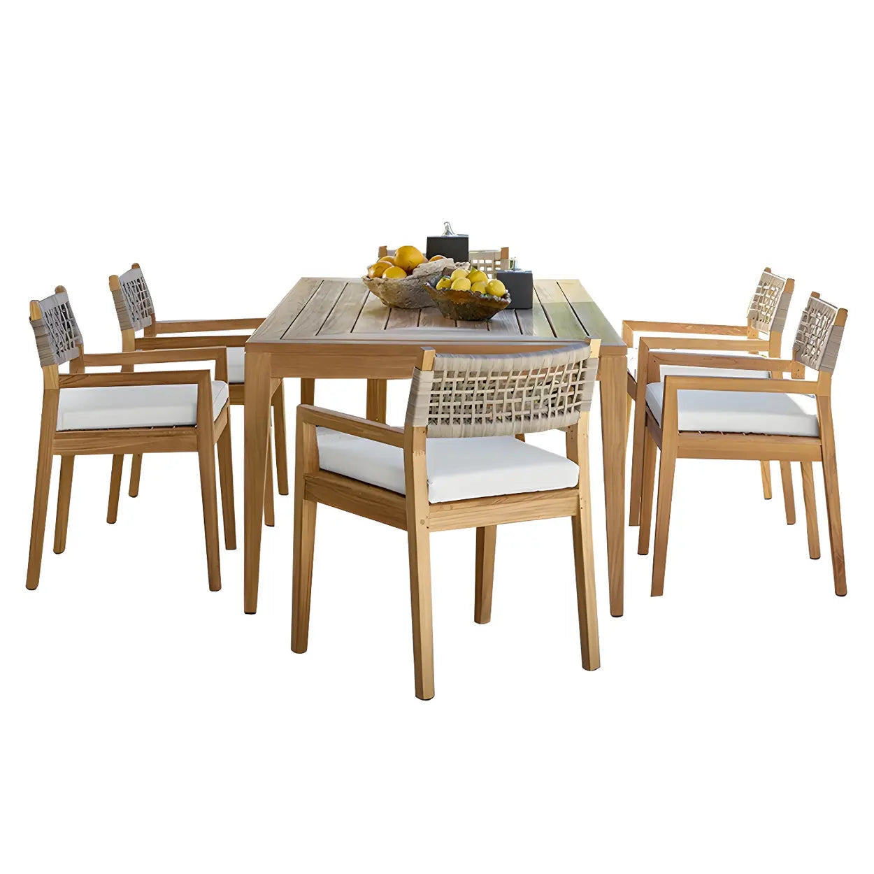 Modern Teak Outdoor Dining Set Rectangular Wood Color