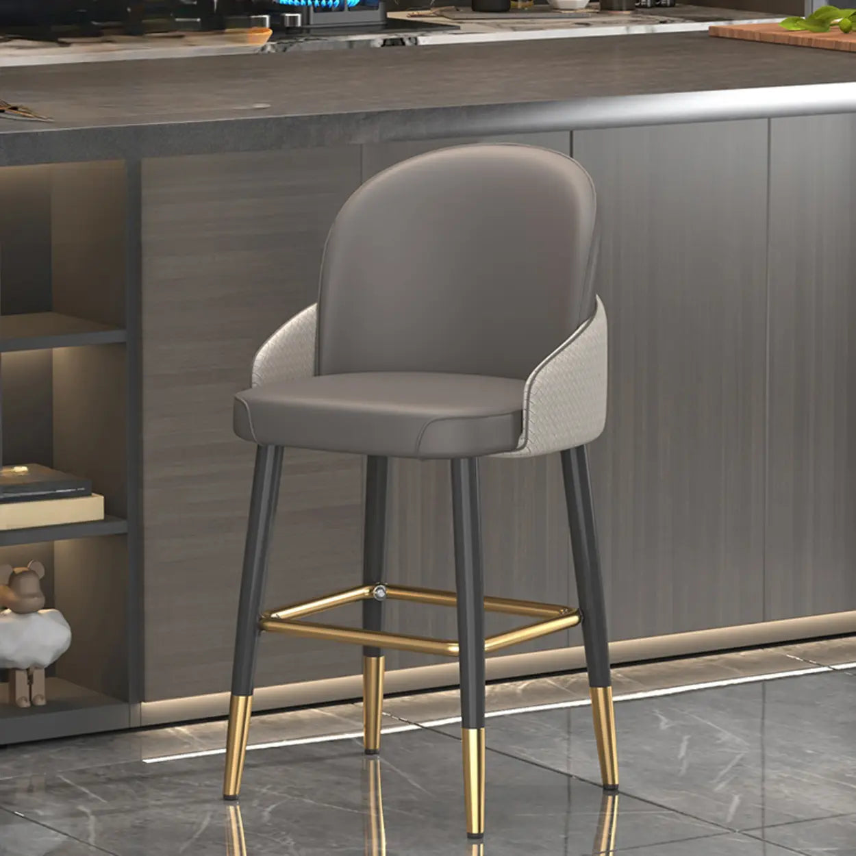 Modern Upholstered Swivel Leather Bar Stool with Metal Legs