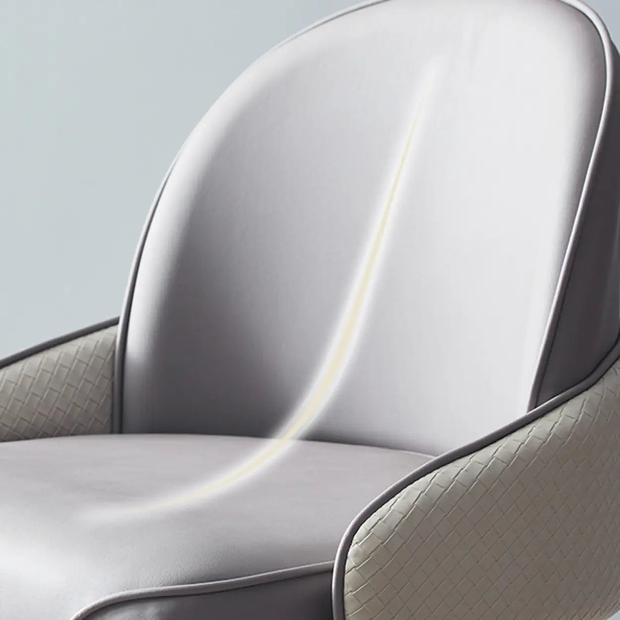 A rounded backrest and short armrests enhance user comfort. These features help users maintain good posture while providing a relaxed sitting position.