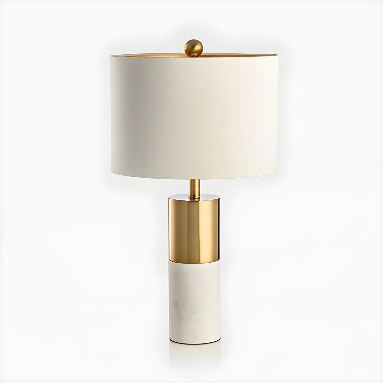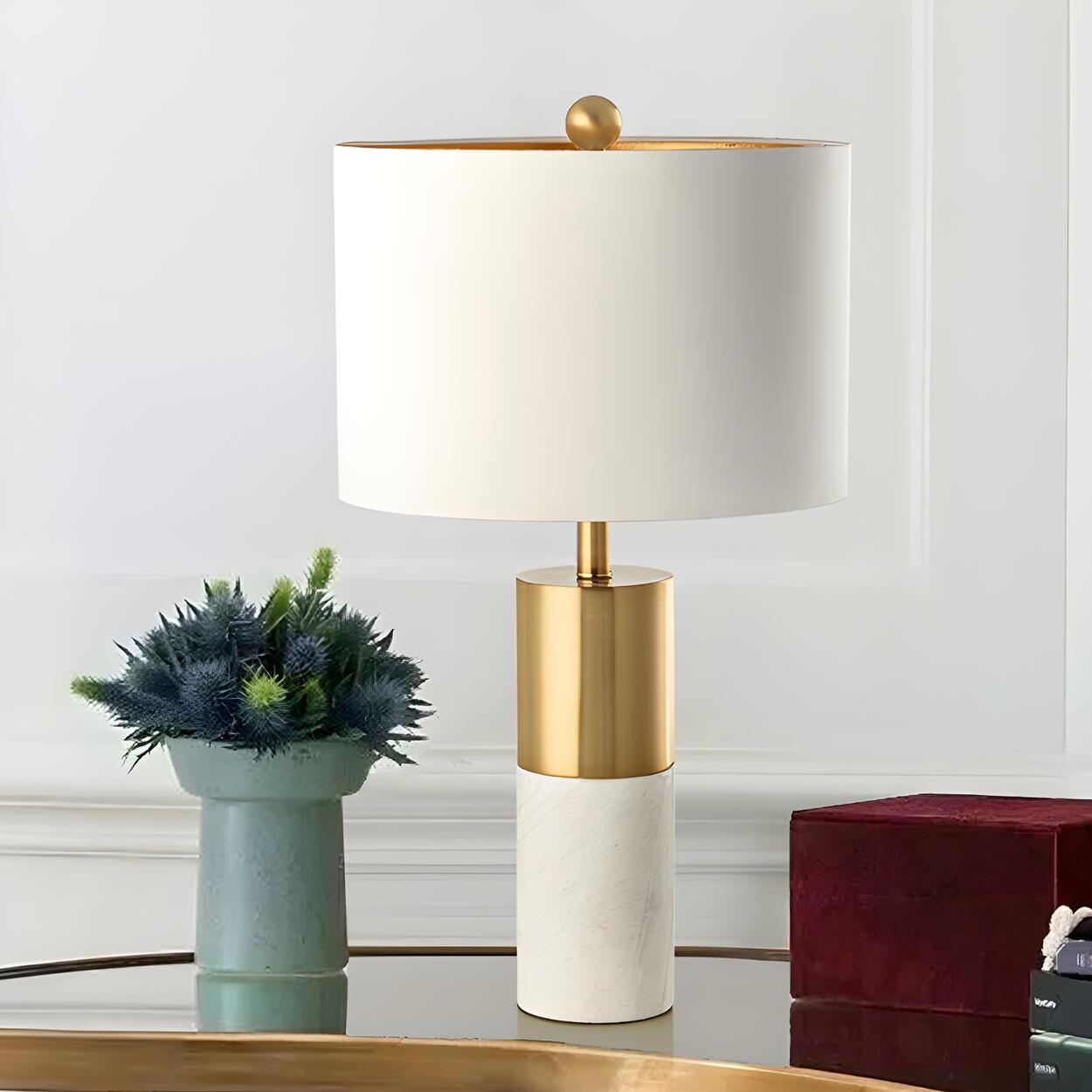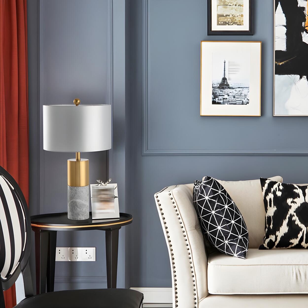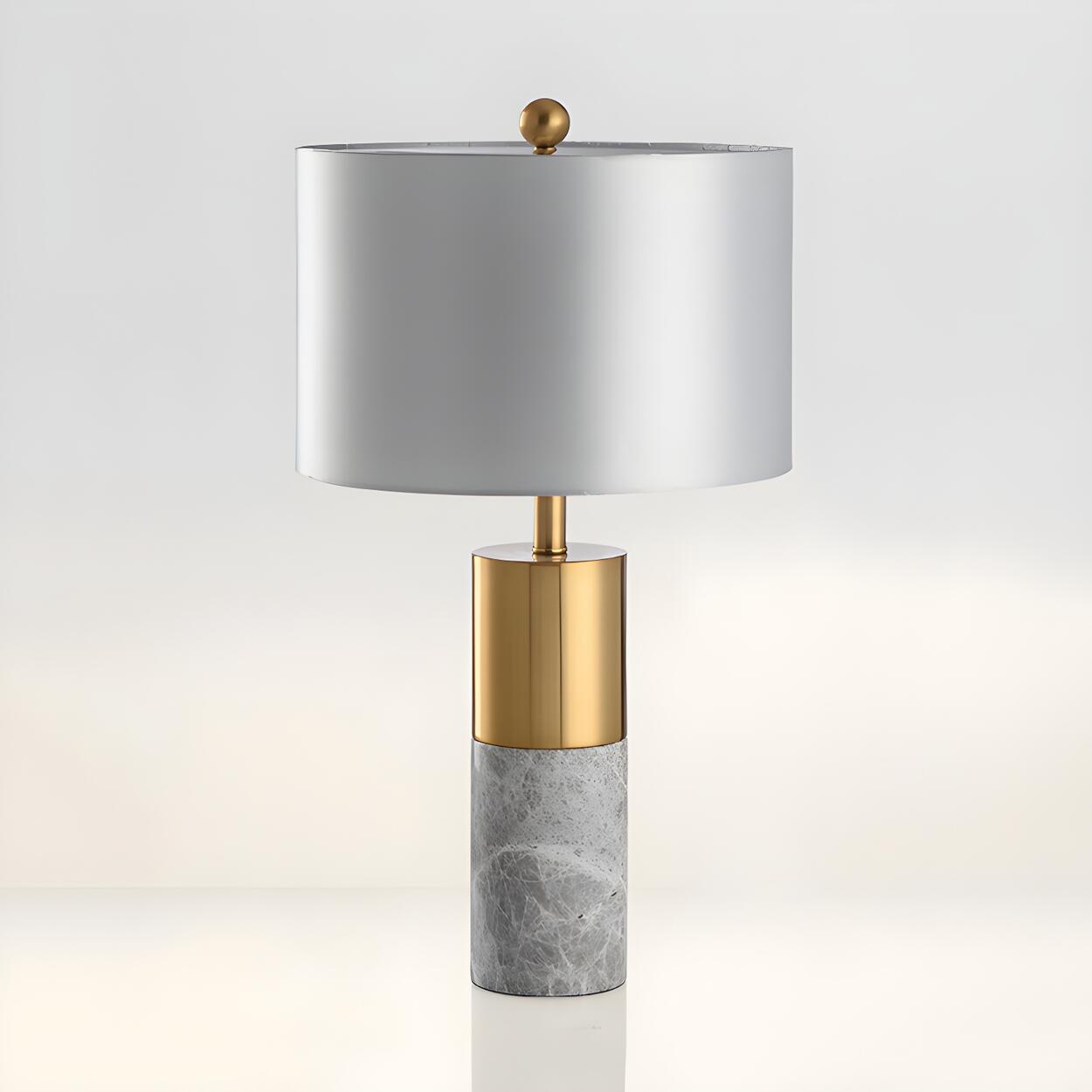 This modern column table lamp merges marble and metal materials with a simple fabric shade, improving elegance and modernity in the bedroom while offering soft and comfortable lighting.