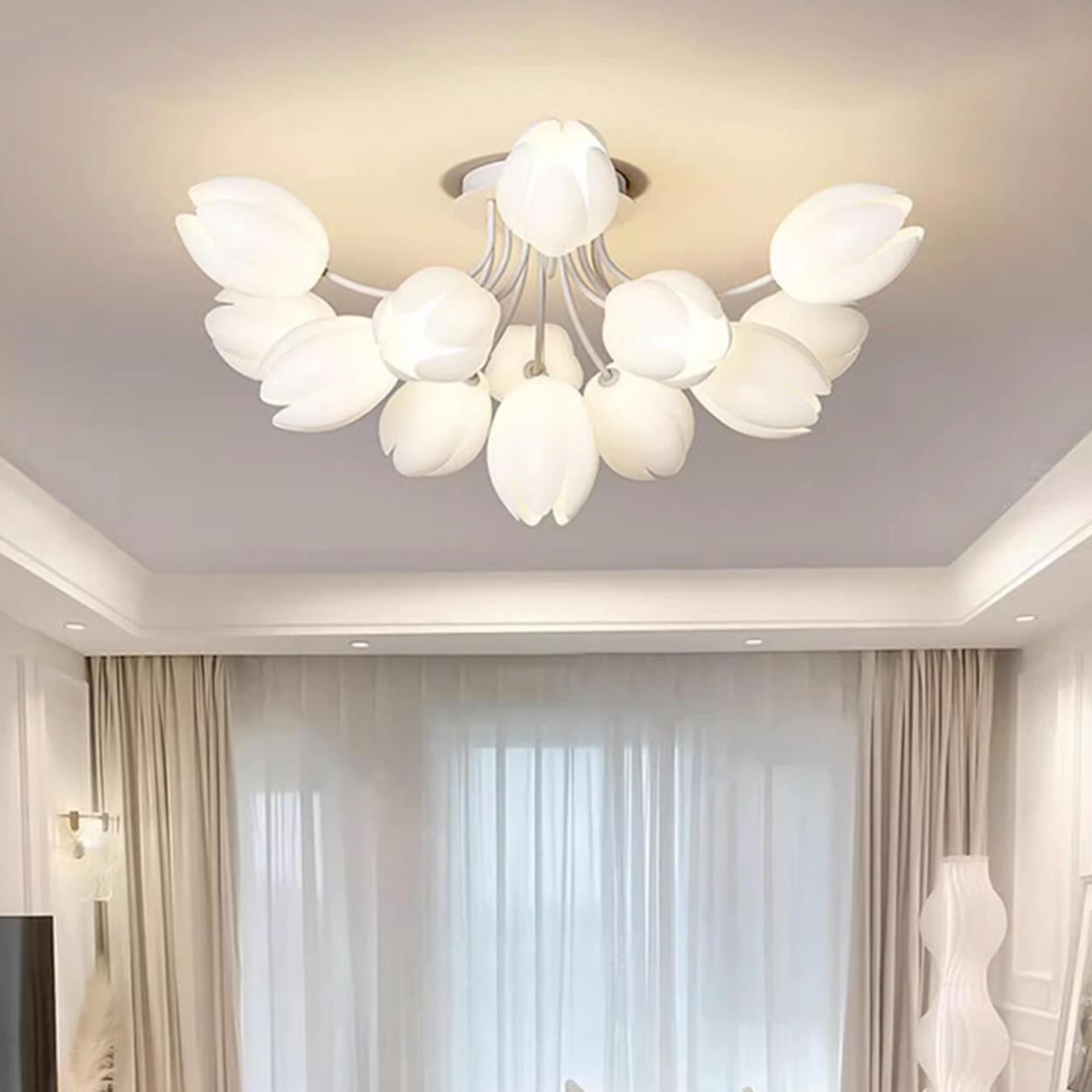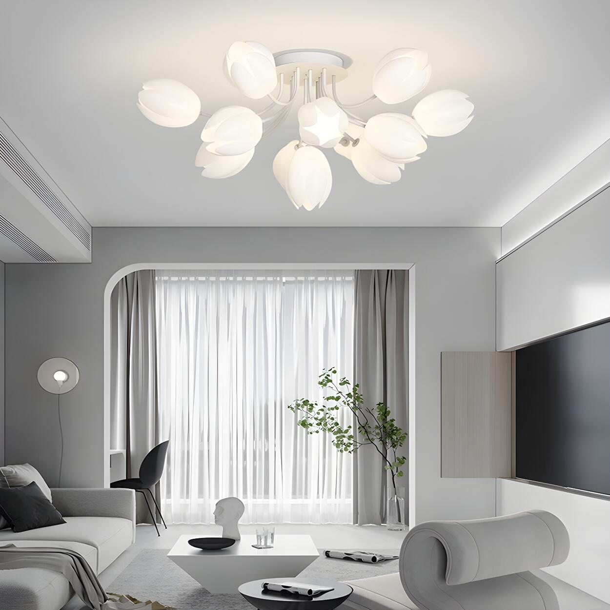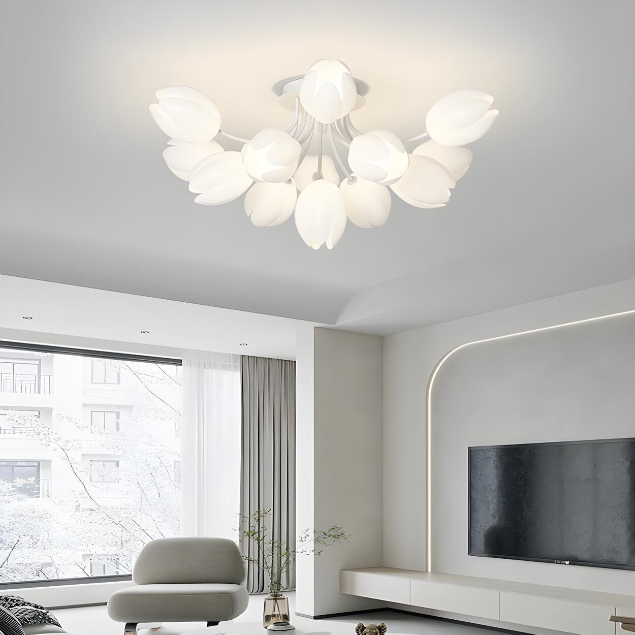 Modern White Elegant Flower Semi-Flush Mount Light - 3-Light is backordered and will ship as soon as it is back in stock.