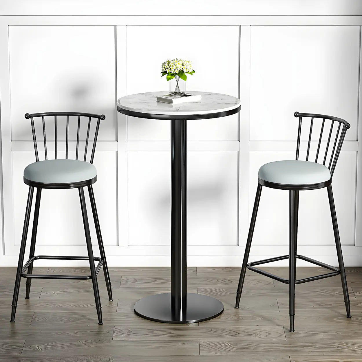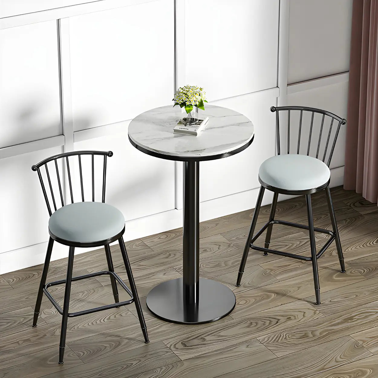 This bar table adopts a modern and simple design. The perfect combination of white marble tabletop and black metal base adds a touch of fashion to your home or commercial place.