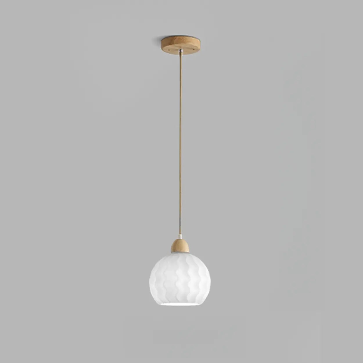 Modern Wood White Glass Round LED Pendant Light