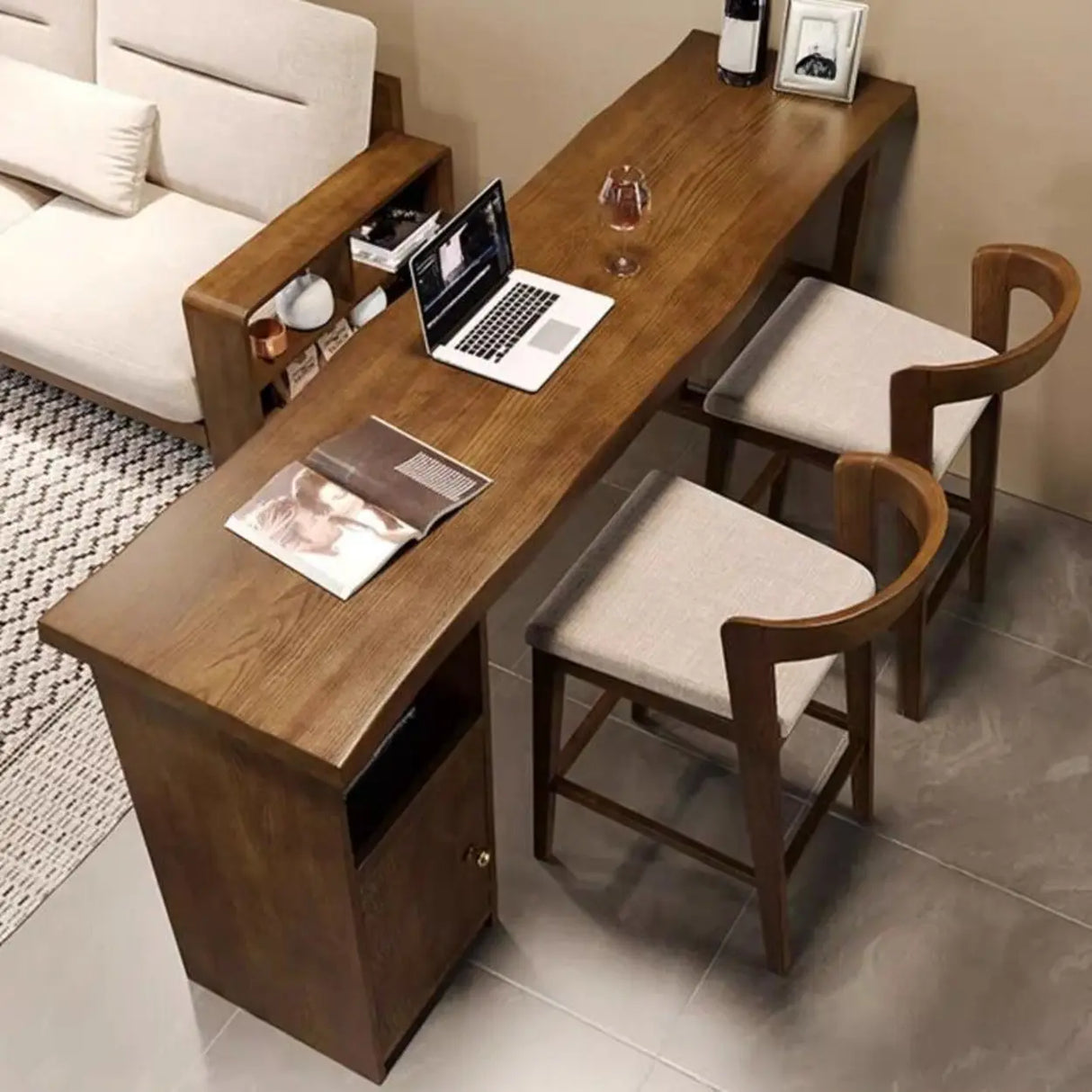 Modern Wooden Bar Table Set with Storage and High Stools - 39.4"L x 17.7"W x 41.3"H / Table Only is backordered and will ship as soon as it is back in stock.
