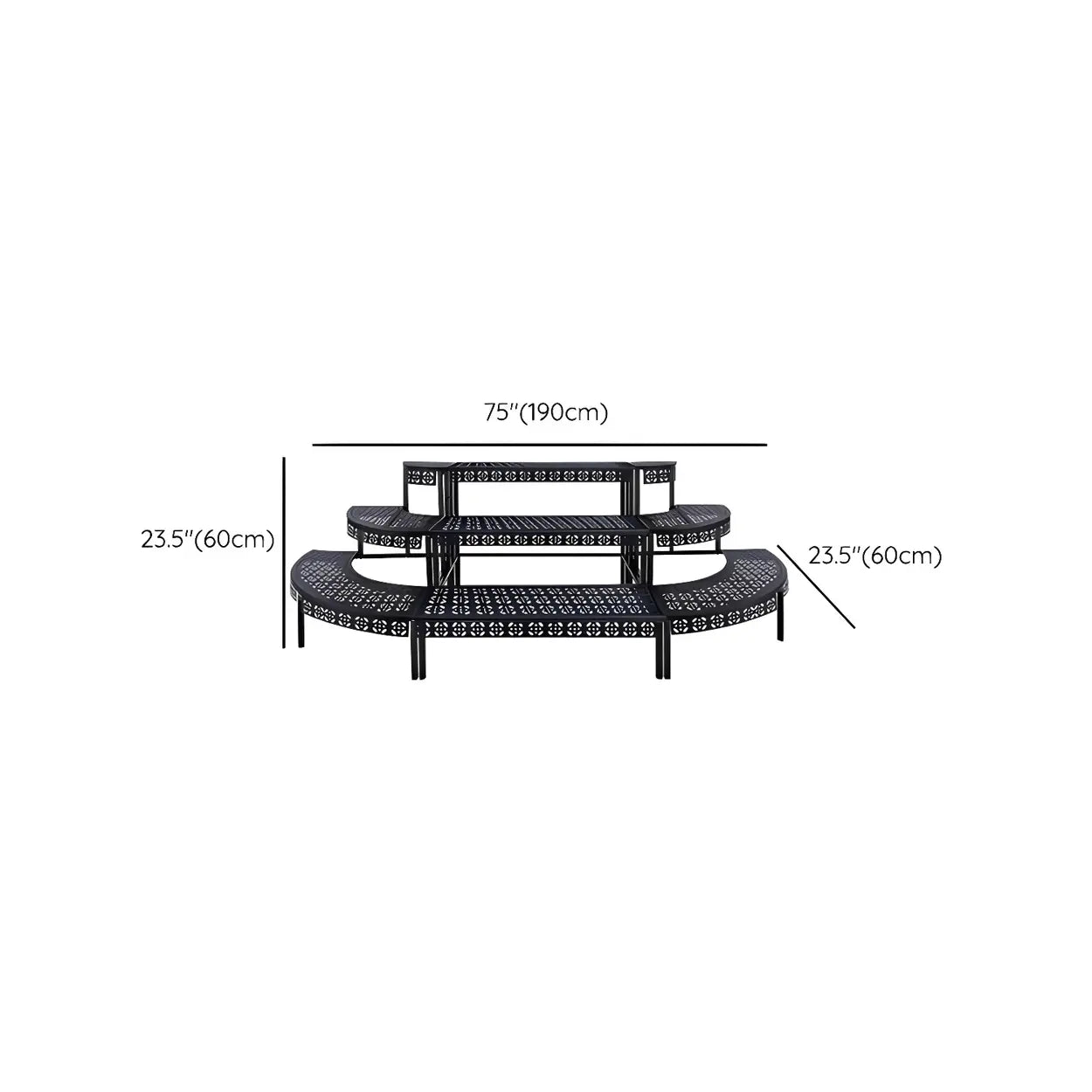 Modish Metal Semi-Circle Balcony Black Plant Stand - Black / 23.6"L x 23.6"W x 23.6"H is backordered and will ship as soon as it is back in stock.