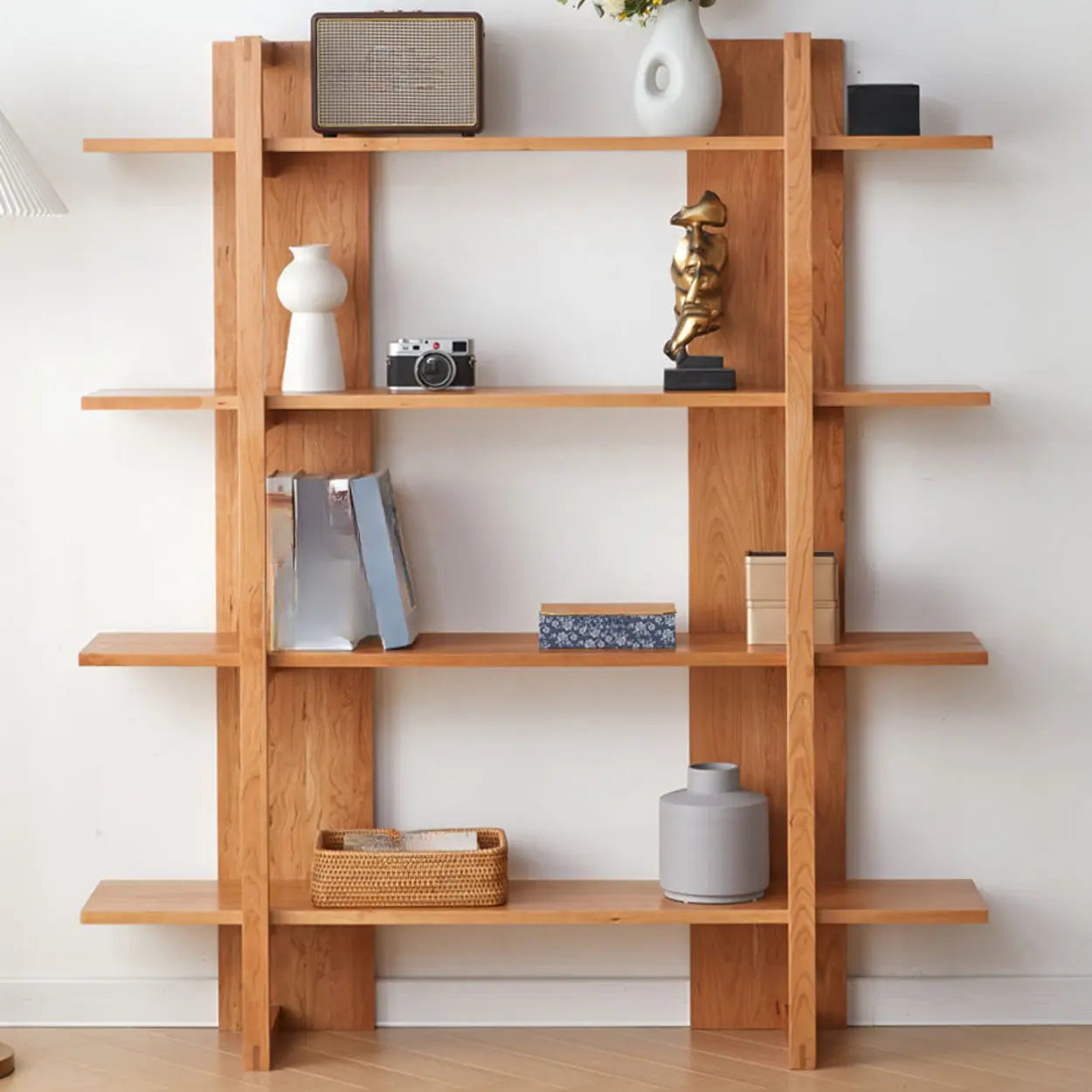 Modish Open Vertical Wood Etagere Display Bookshelf