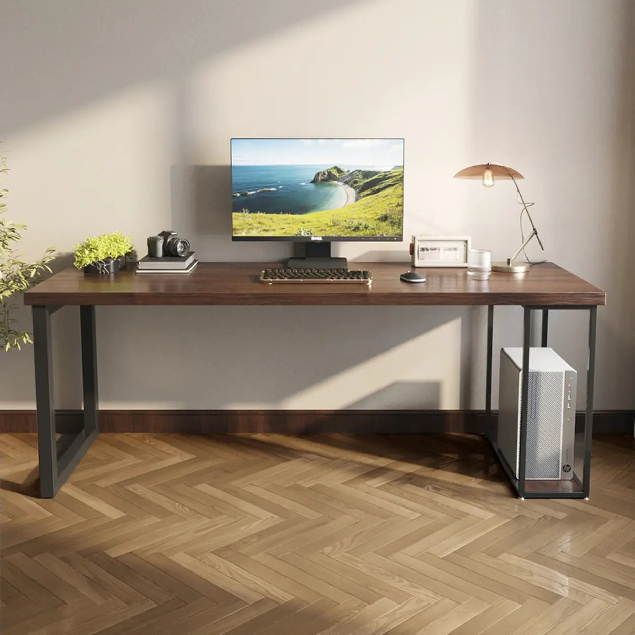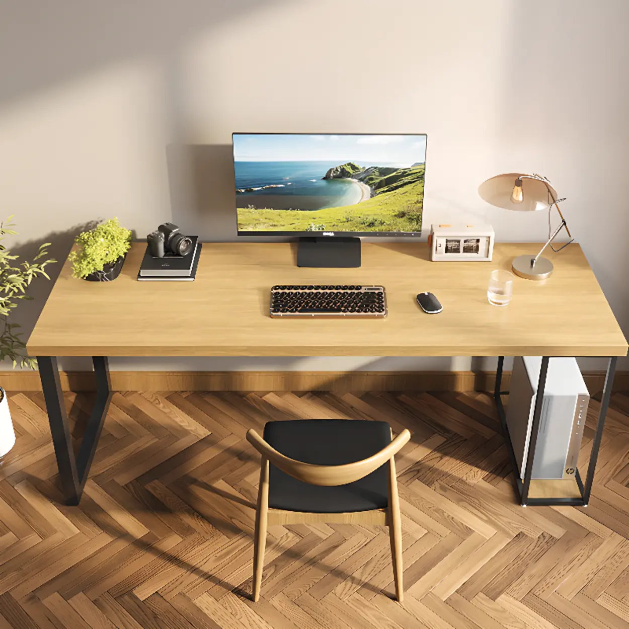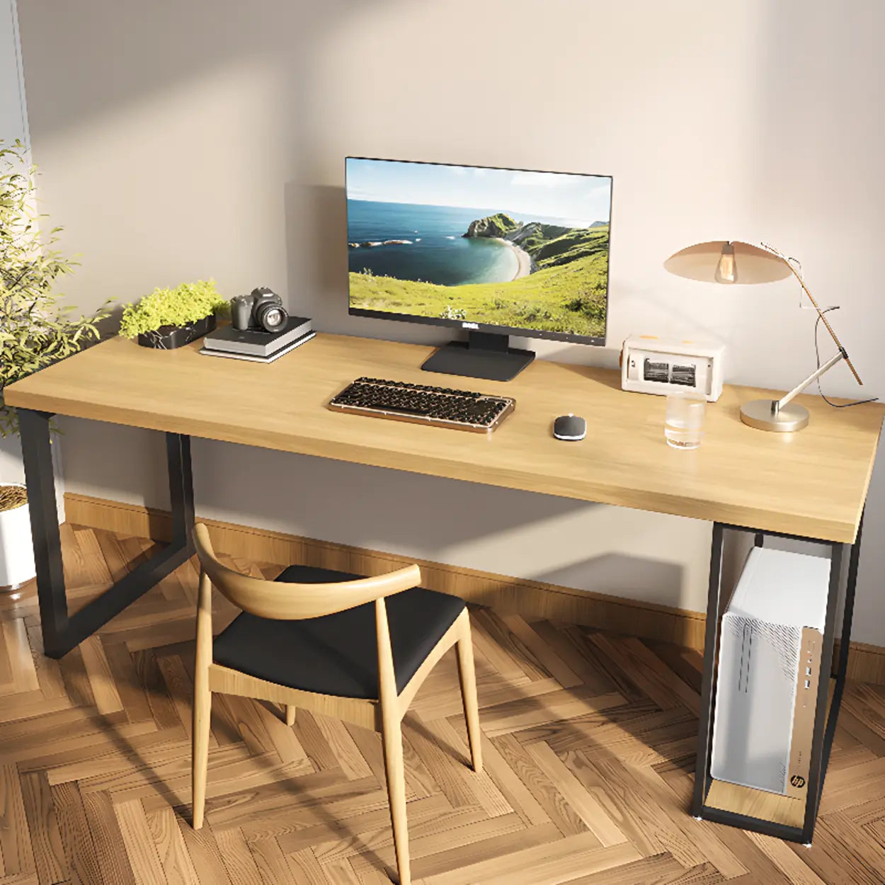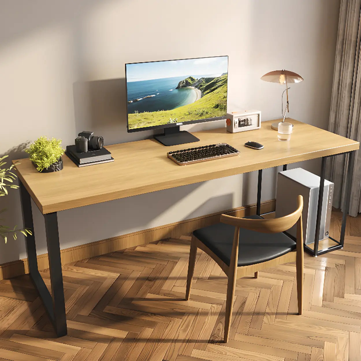 This functional rectangular pine table merges stylish innovation with expediency to flawlessly enhance your office backdrop. Its classic wood color complements the black metal frame, which is not only visually pleasing but also applicable and durable. Whether you need an efficient work area or a simple ornamental piece, this table can fulfill your demands.