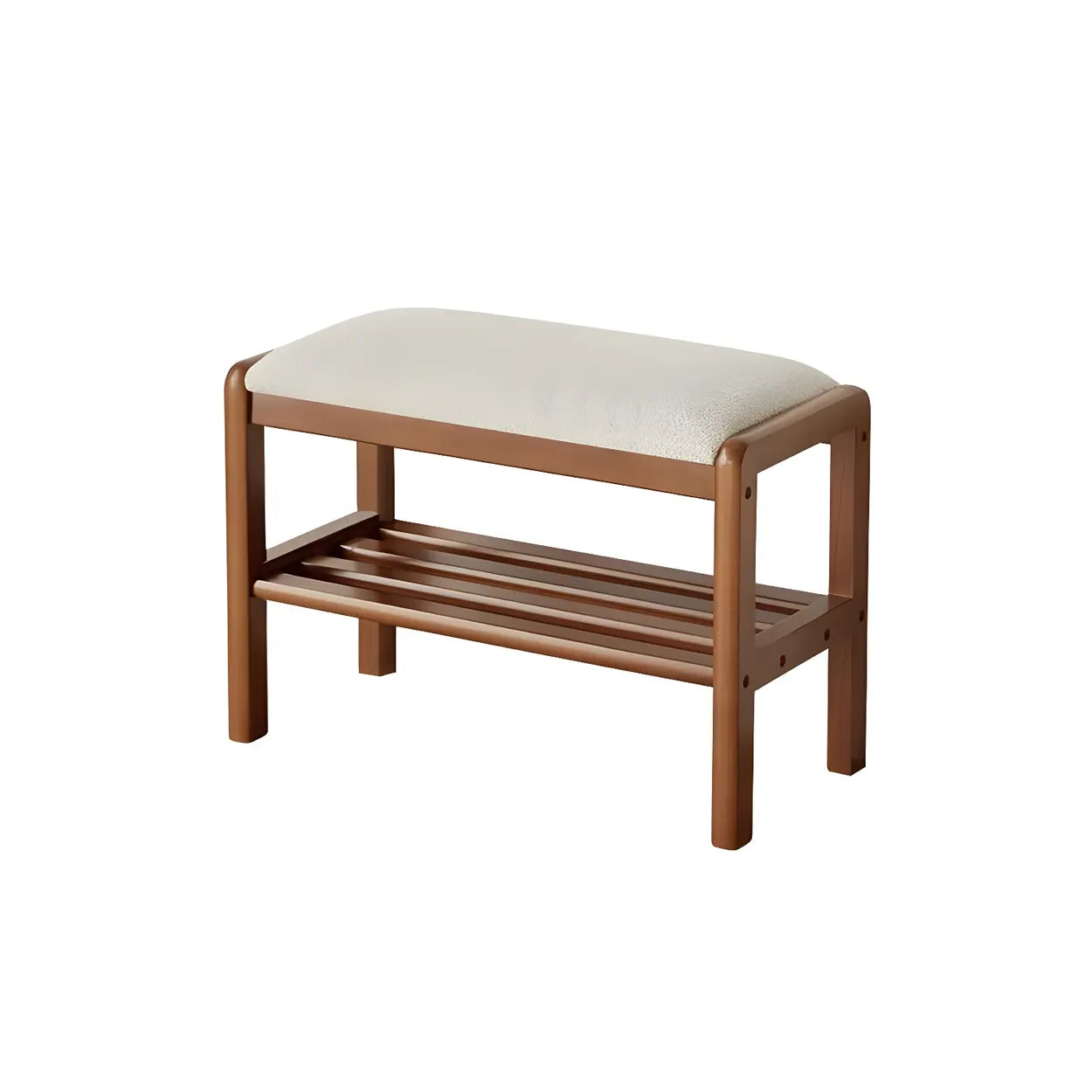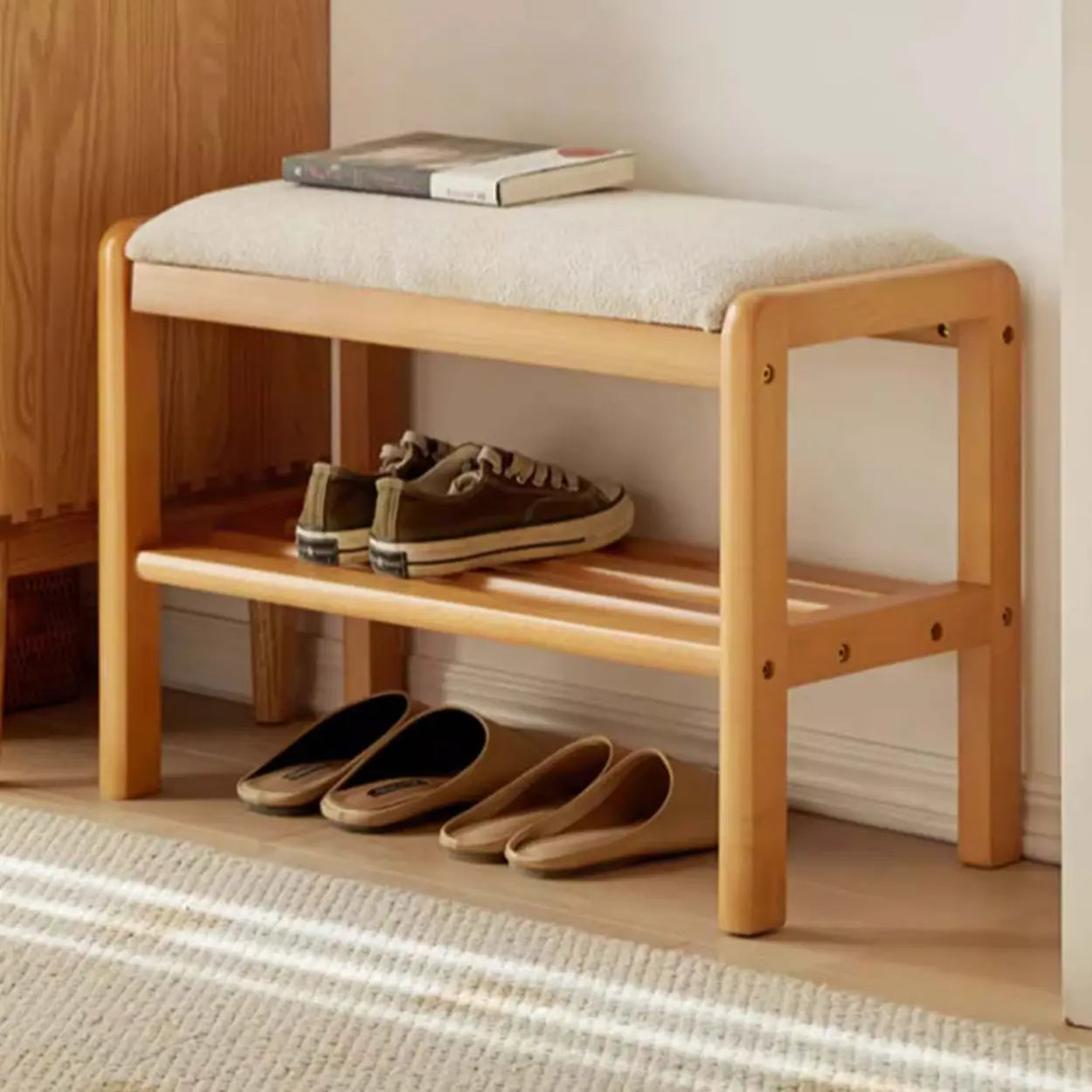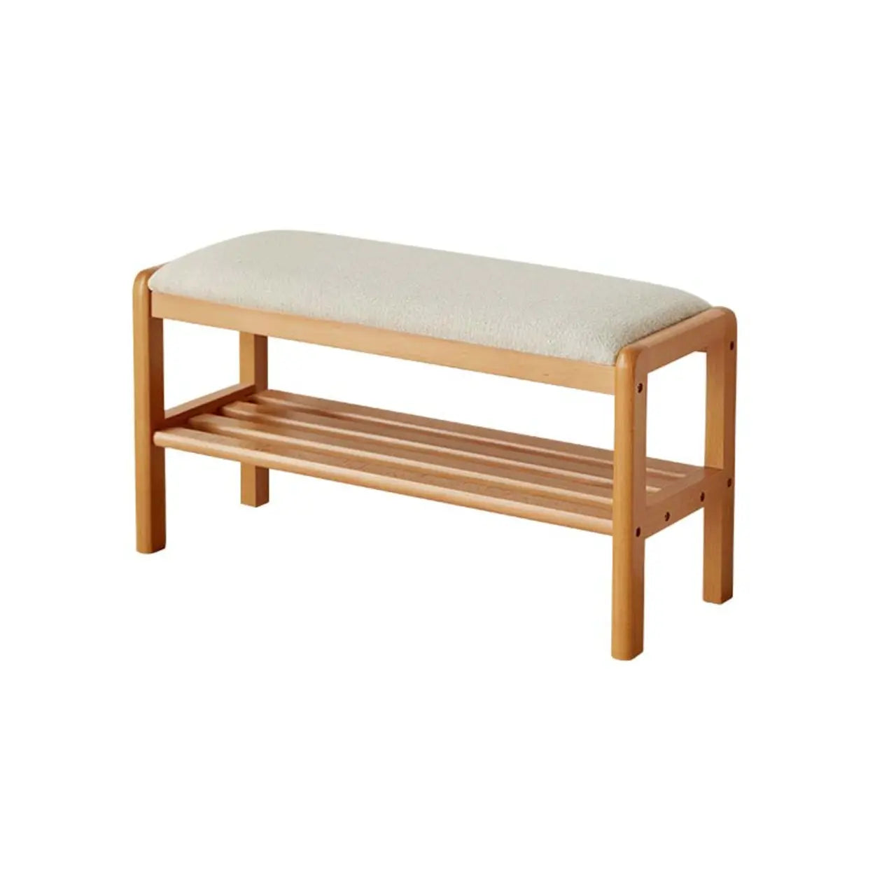 Natural Upholstered Entryway Bench with Shoe Shelf