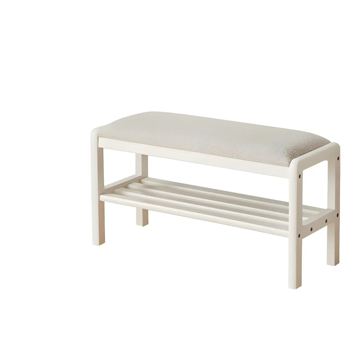 Natural Upholstered Entryway Bench with Shoe Shelf - 31"L x 12"W x 17"H / White is backordered and will ship as soon as it is back in stock.