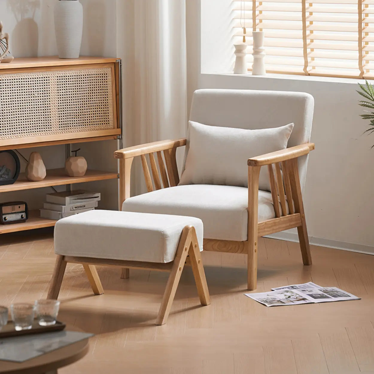 Natural Wood Frame Cotton Linen Fixed Back Arm Chair