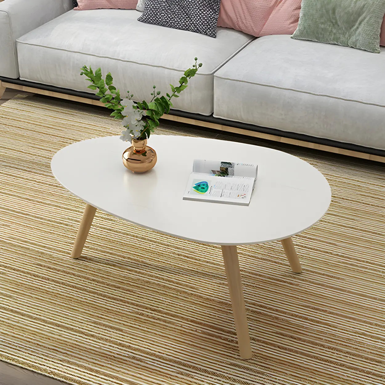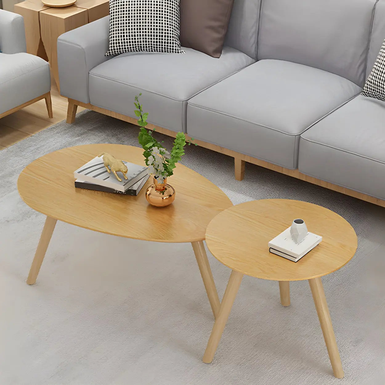 Natural Wood Oval Round Three Leg Bunching Coffee Table