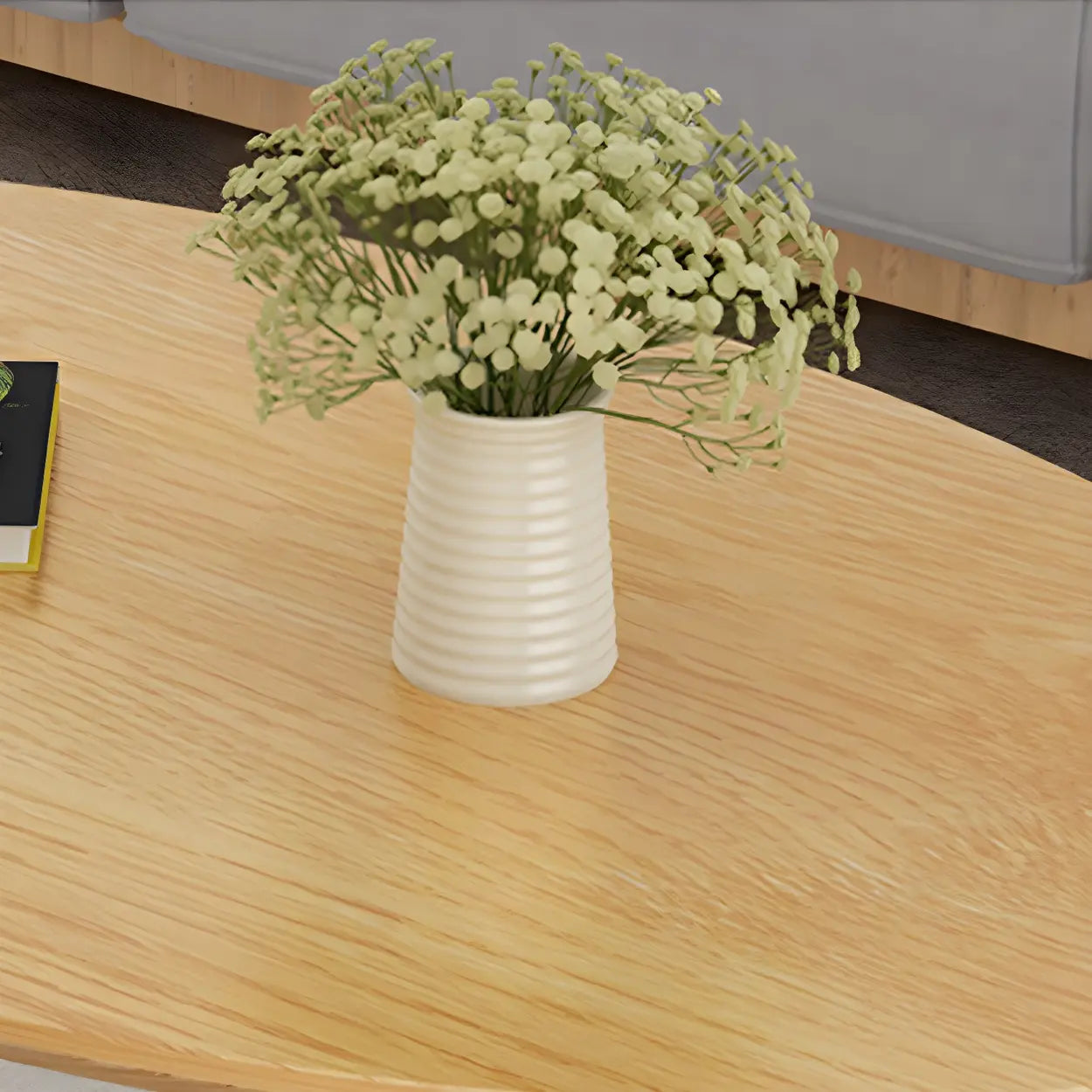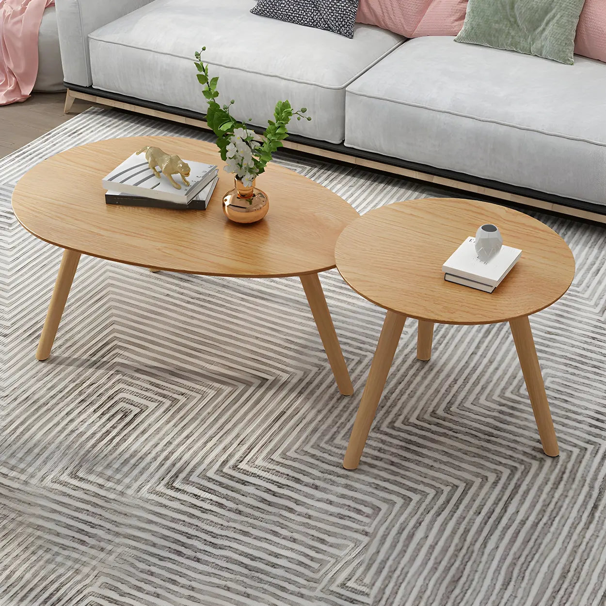 This wooden coffee table set features an elegant oval and round design that will brighten up your living room. The natural wood feel creates a warm and natural atmosphere, perfect for a home environment. This coffee table set is beautiful and practical and can be used on varied occasions, whether it is for placing coffee, books, or as a decorative centerpiece.