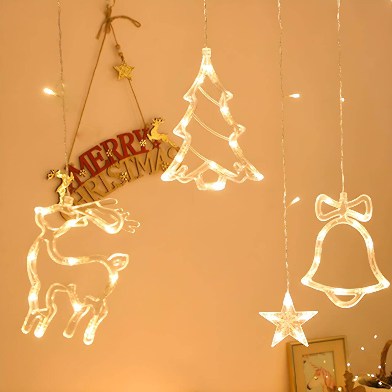 This Nordic-style Christmas tree and deer-shaped LED light string is designed for bedroom and holiday decoration. The transparent lights emit a warm and soft light, creating a unique holiday atmosphere. The light string combines a variety of holiday elements such as stars, Christmas trees, bells, etc., which is very suitable for decorating walls, curtains or ceilings, adding a dreamy Christmas atmosphere to your bedroom.