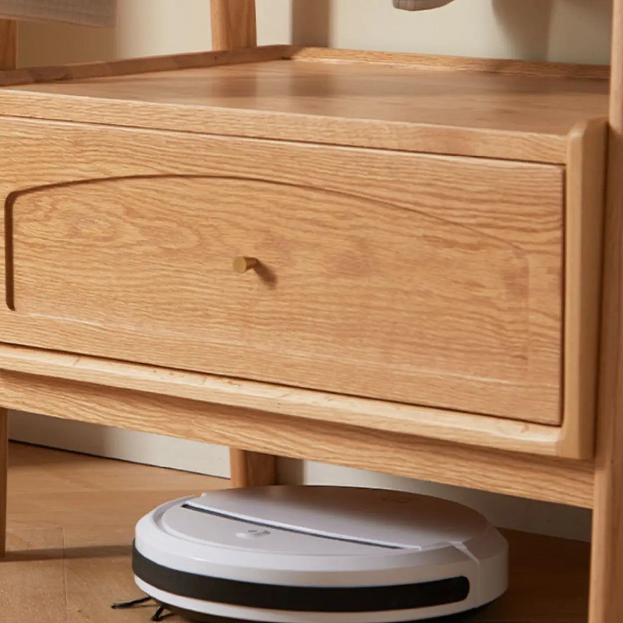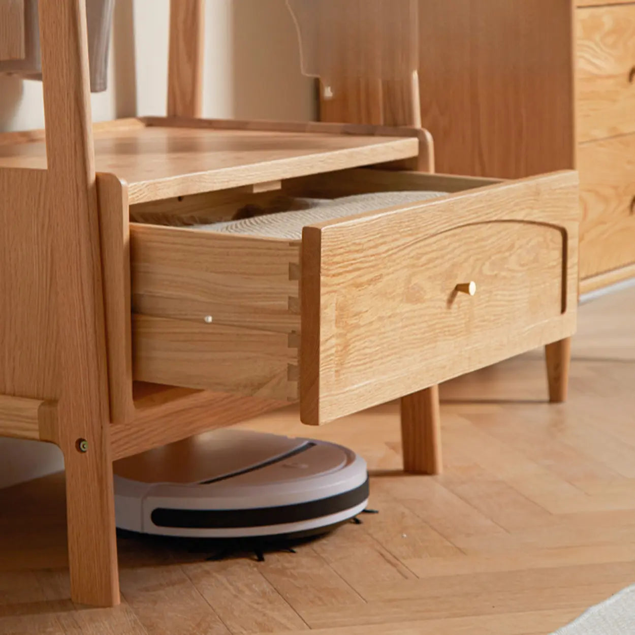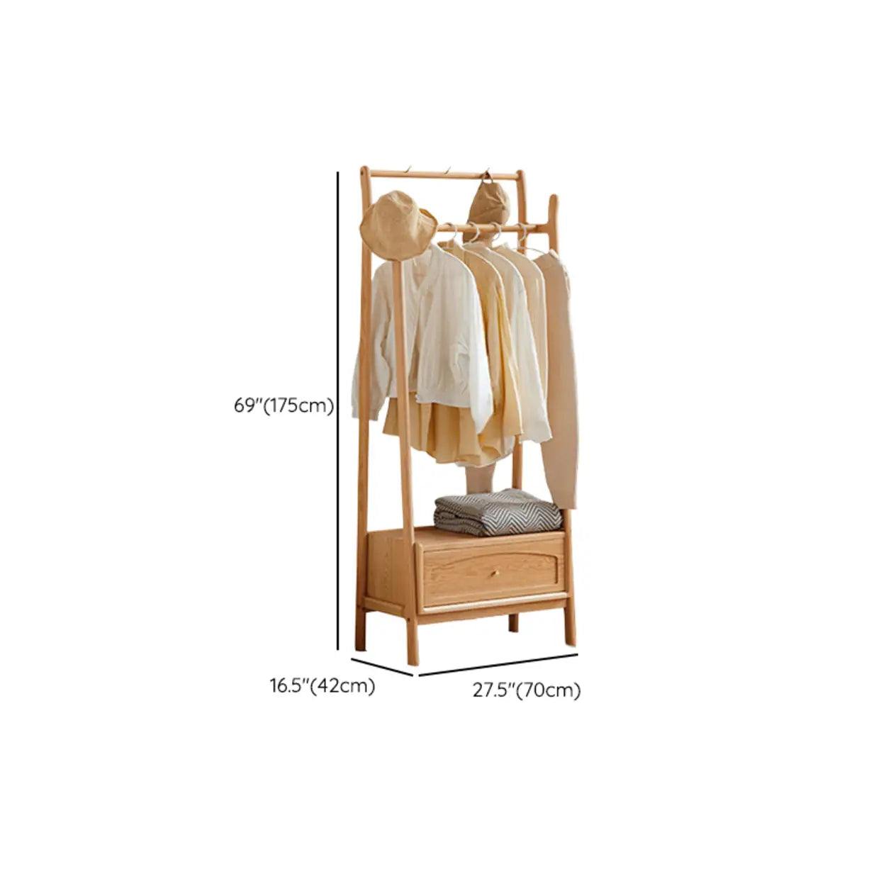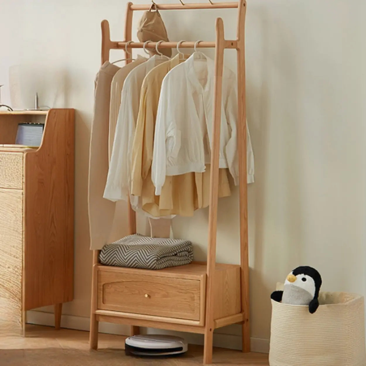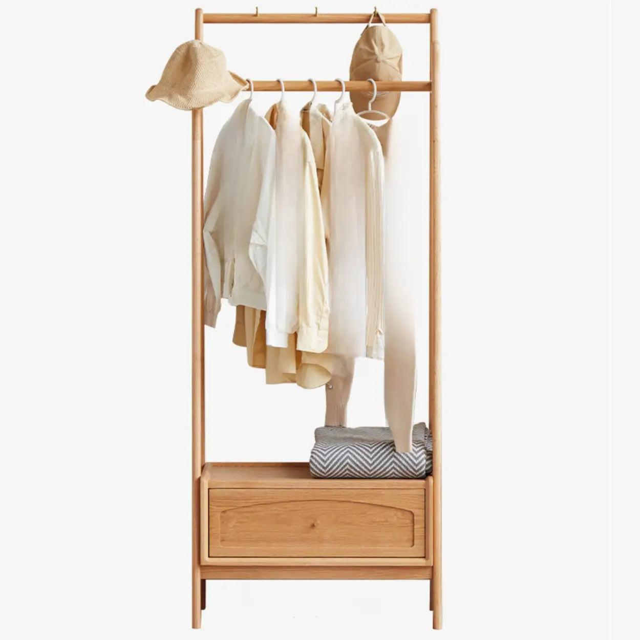 Oak Light Wood Natural Finish Coat Rack with Drawer
