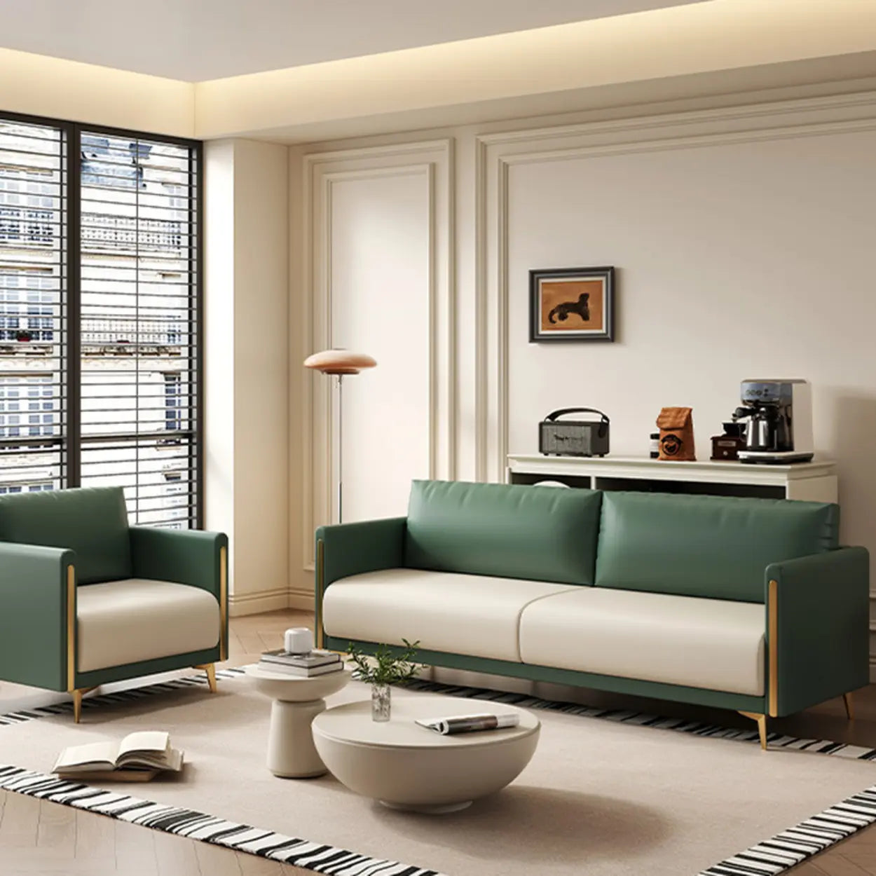 This simple and modern sofa is the perfect addition to your living room, combining style with functionality. Its gorgeous olive green and beige color scheme furnishes an elegant complement to any decor style. A wide range of sizes based on multiple options ensures that it will fit your living space perfectly while providing comfortable seating for you and your guests.