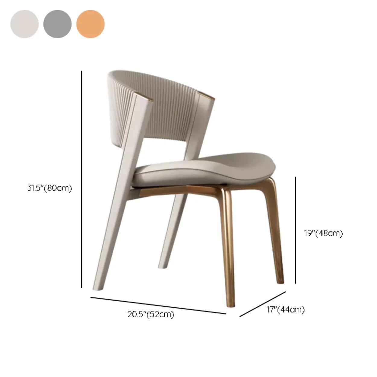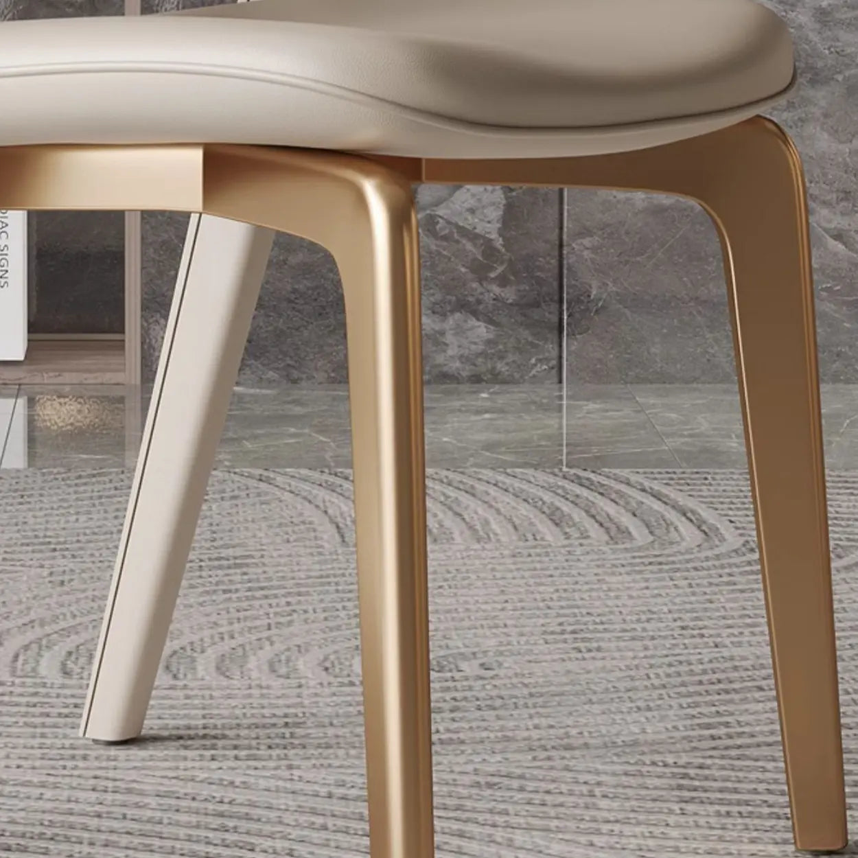 Open Back Faux Leather Seat Metal Dining Chairs Beige