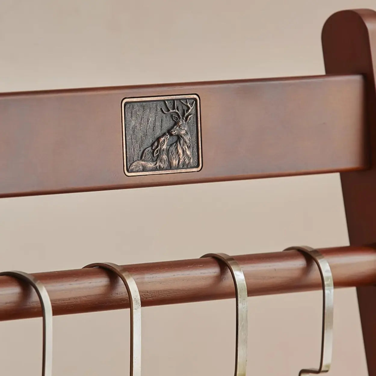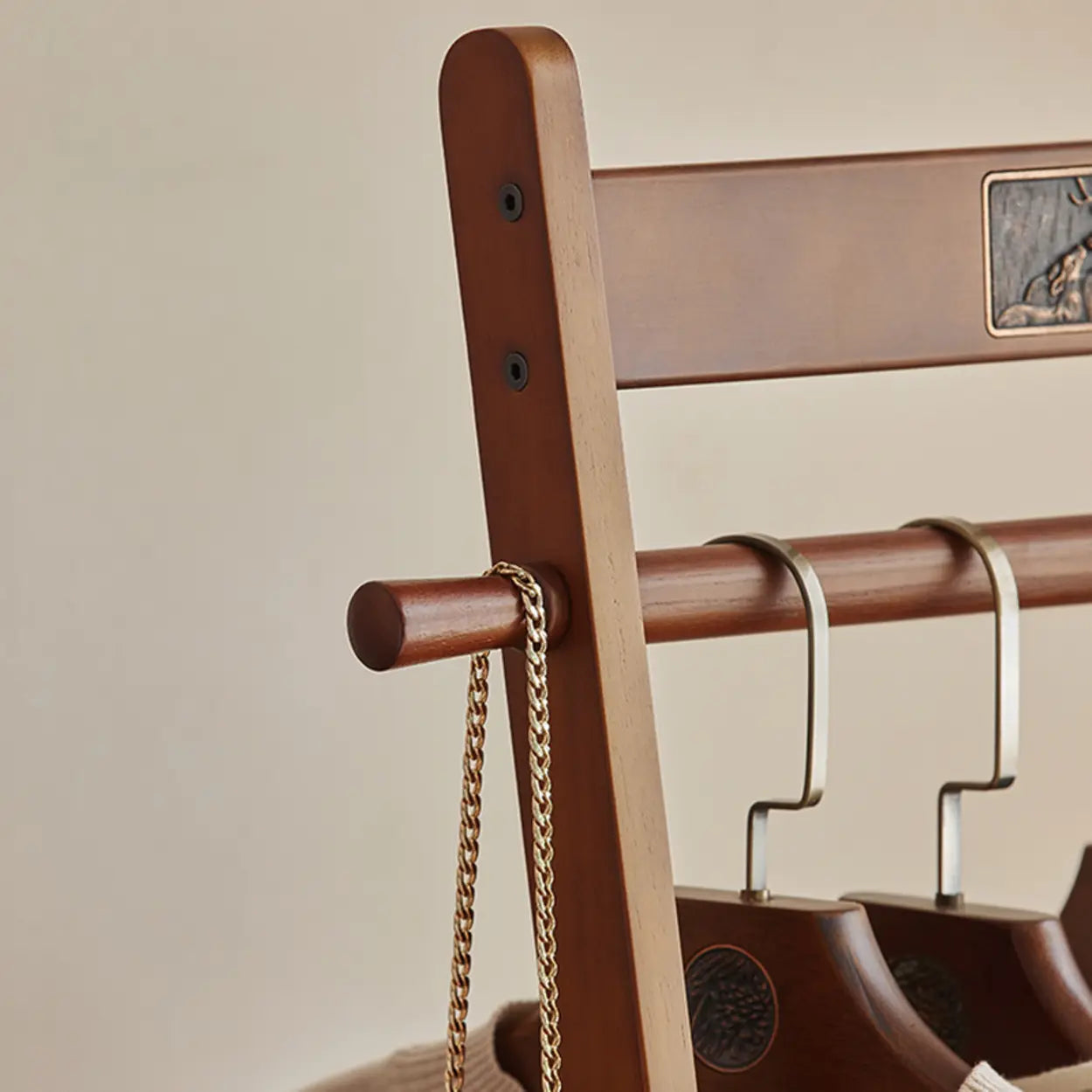 This Art Deco-style coat rack is not only elegant in appearance, but also versatile and suitable for any space. Its A-frame provides you with stable support, while the natural texture of solid wood brings you the ultimate visual and tactile enjoyment. The warm brown paintwork perfectly matches modern or traditional decoration styles, making it a work of art in your home. The removable metal storage basket at the bottom provides you with more storage space for different daily necessities.