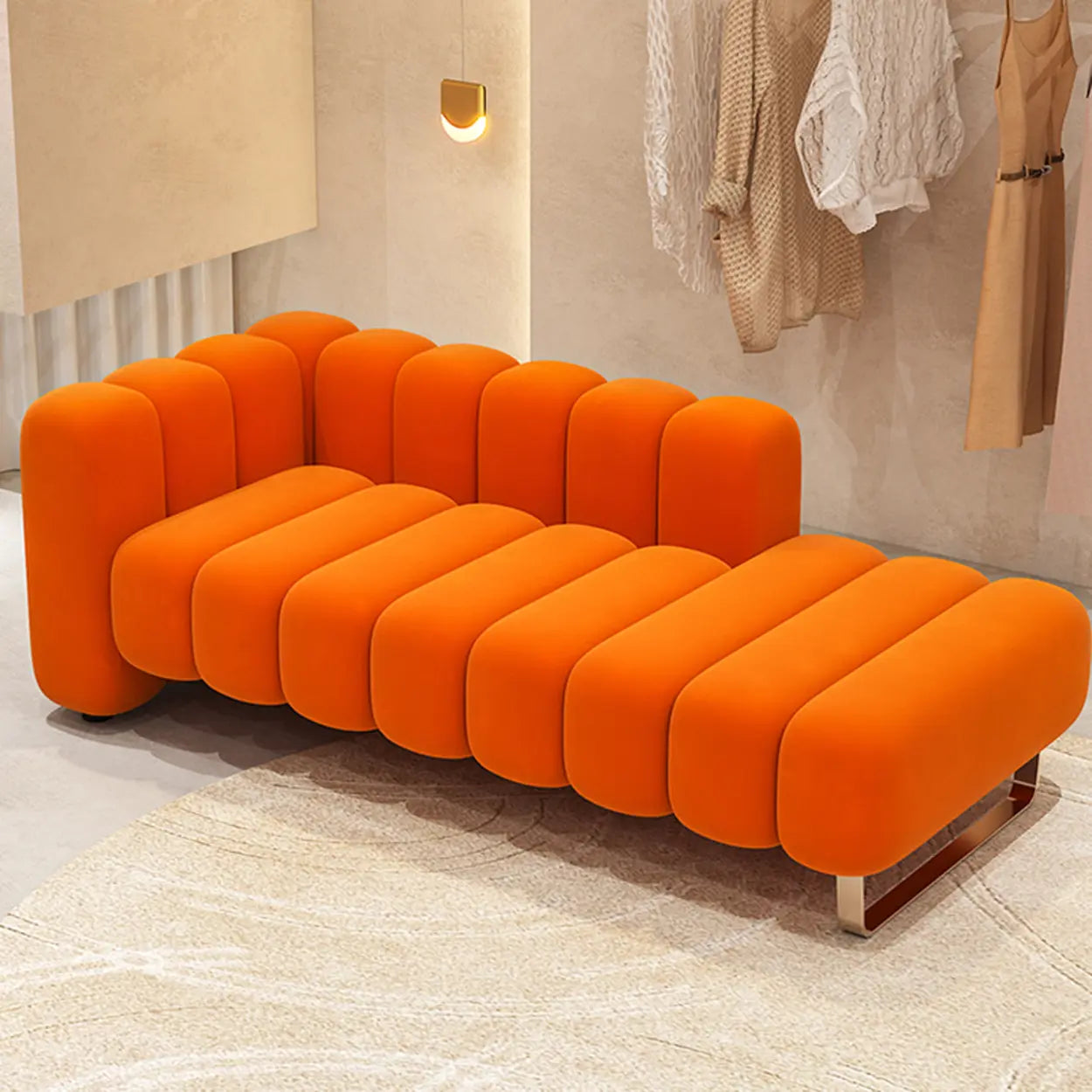 This flannel sofa is like a work of art, adding a touch of color to your living room. Built with premium-quality velvet fabric, it feels soft and comfortable while showing an elegant luster. Whether you are spending leisure time with your family or entertaining guests at a party, this sofa can furnish luxurious enjoyment. The elegant orange is the finishing touch of the color tone, instantly enhancing the vitality and atmosphere of the entire space.