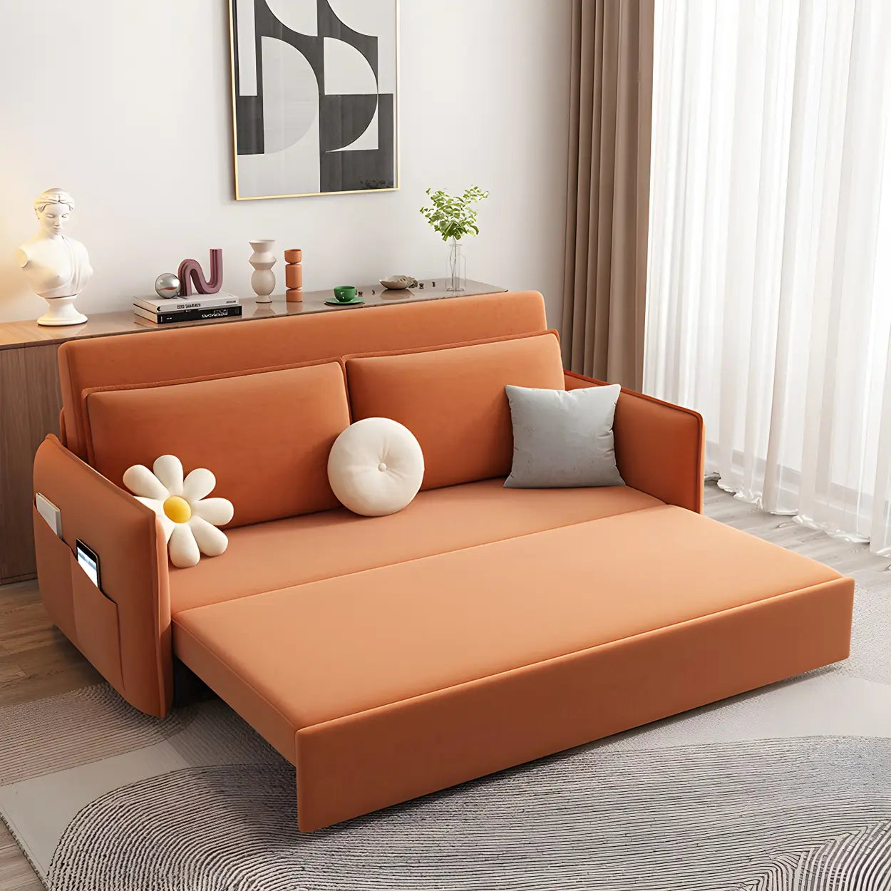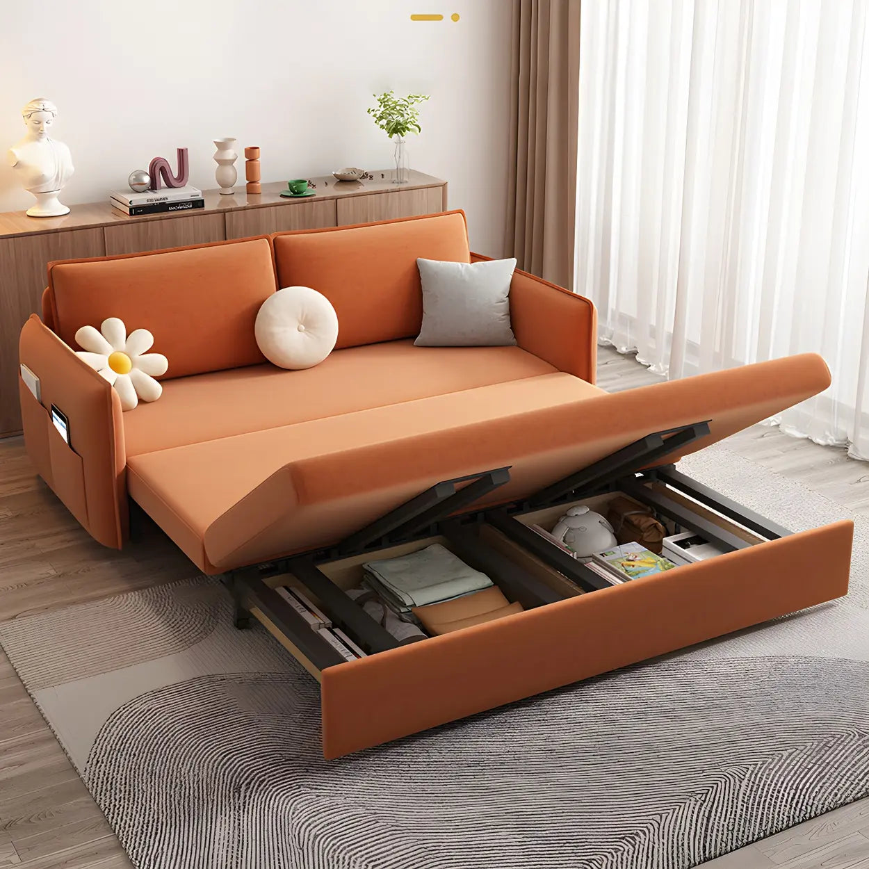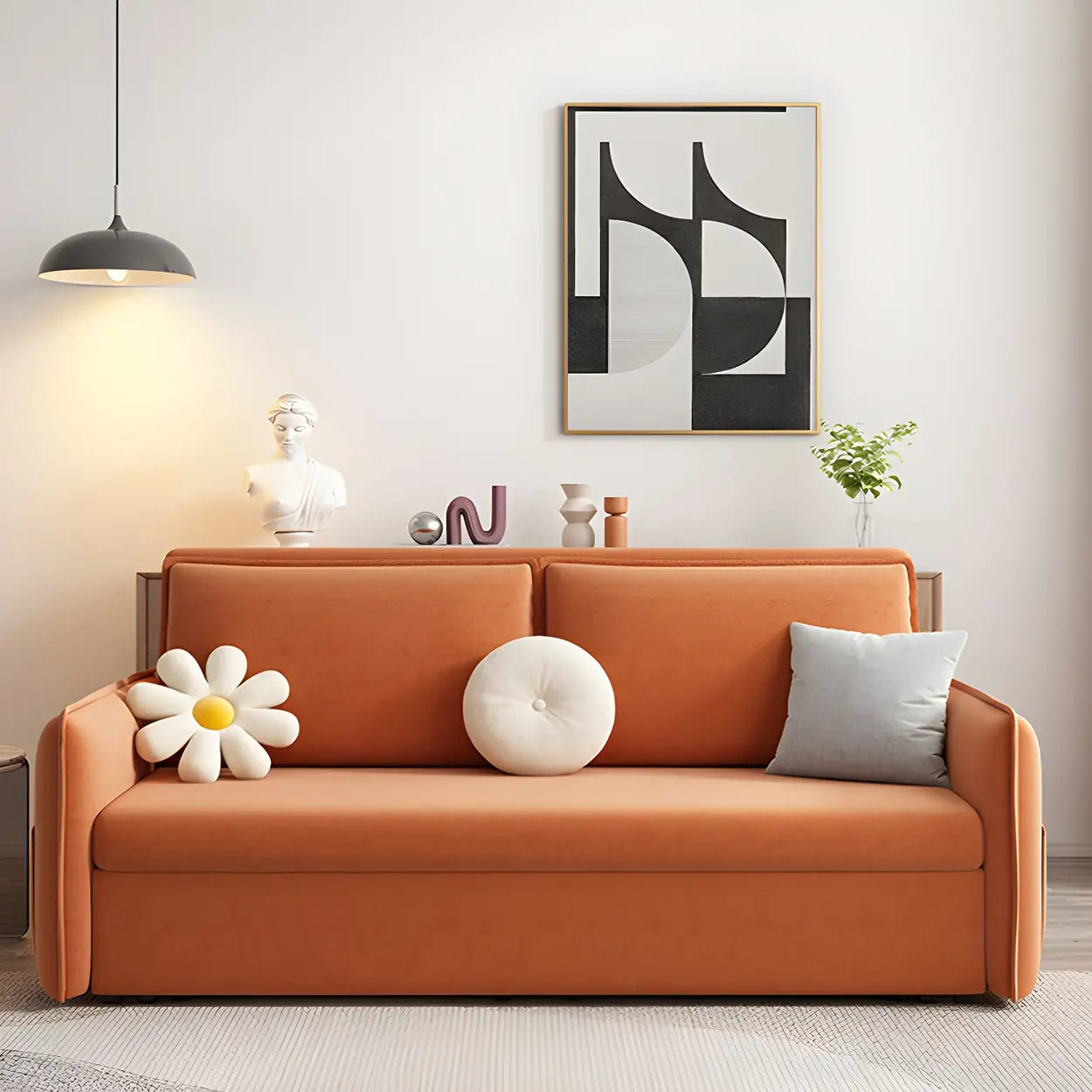Orange Tech Flannel Square Arm Sofa Bed with Storage