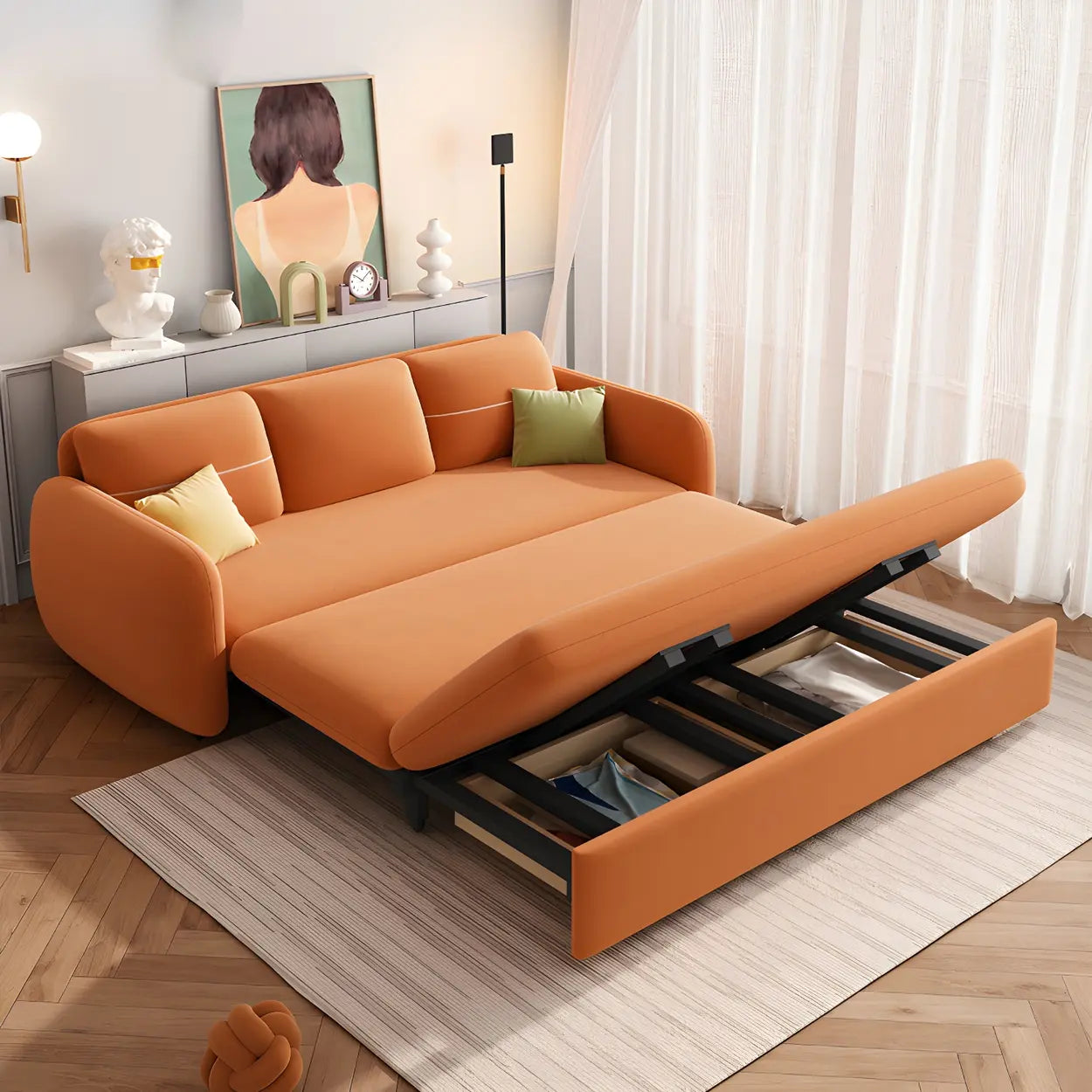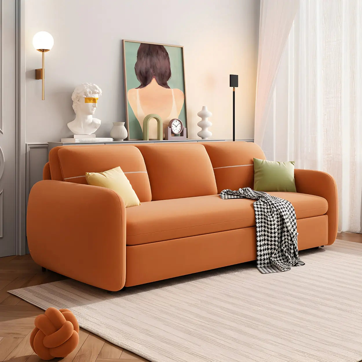 Combining elegance and practicality perfectly, this velvet sofa bed features a bright orange color that brings vitality to your parlor. The superior fabric brings a comfortable touch, making it an ideal choice for family relaxation, entertainment, or receiving guests. The unique convertible design can easily adapt to your needs.