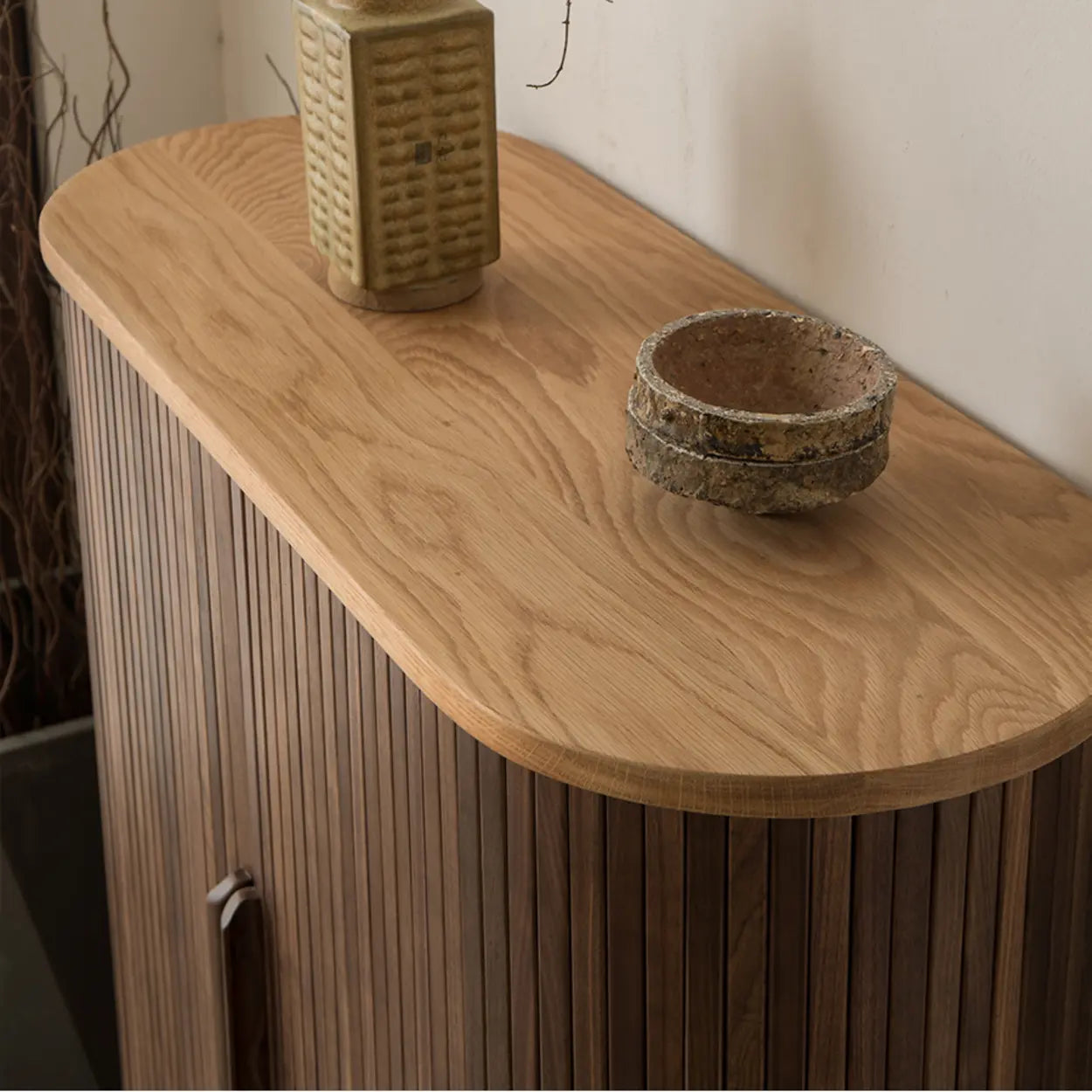 This modern oval wooden shoe cabinet is not only an important decoration for your home but also a practical storage helper. Its exquisite design and high-quality wood make it an ideal choice for living rooms, hallways, and even bedrooms. Its clever combination of modern style and natural wood grain color allows you to easily create a warm and stylish home environment. The seamless storage design provides you with plenty of space to easily accommodate all kinds of shoes without worrying about any clutter.