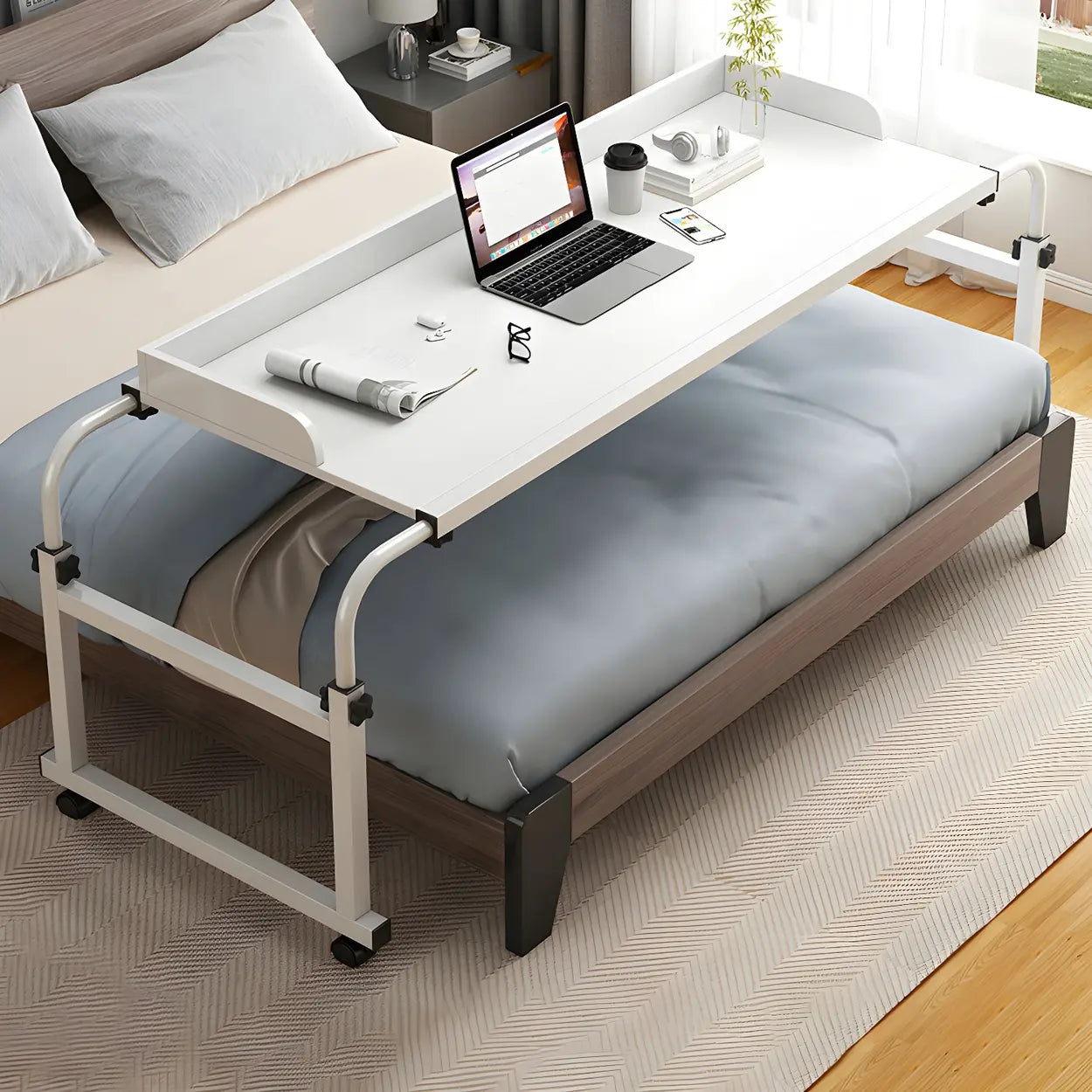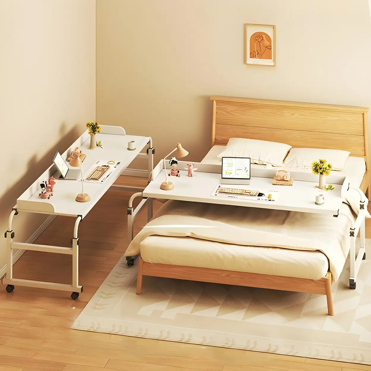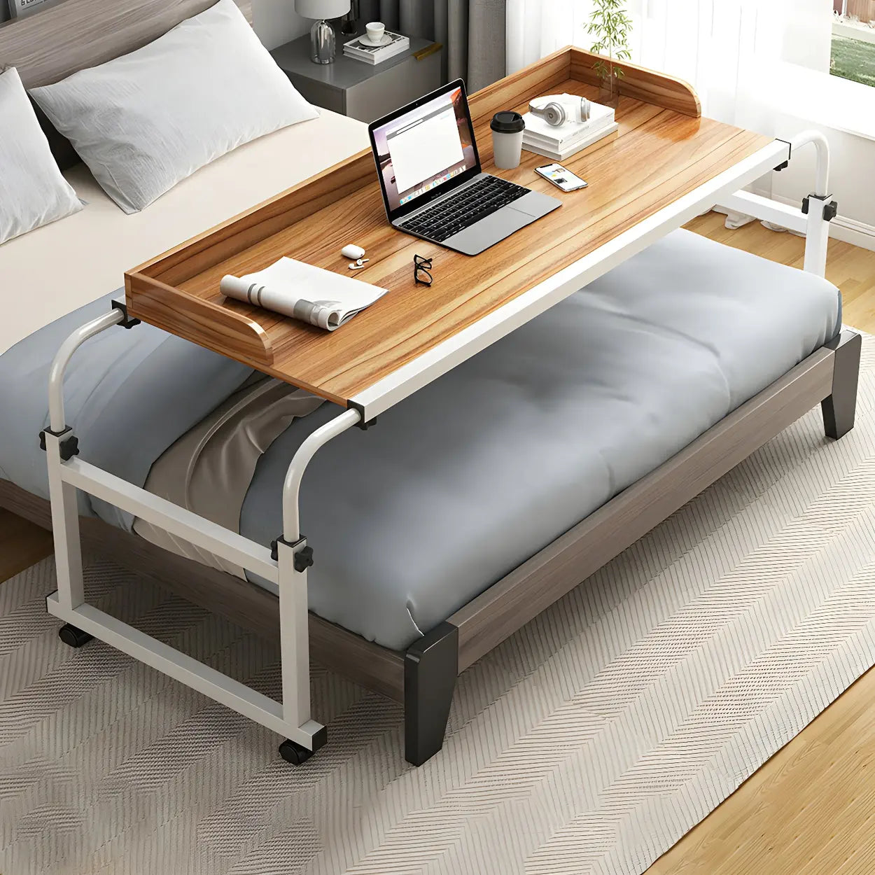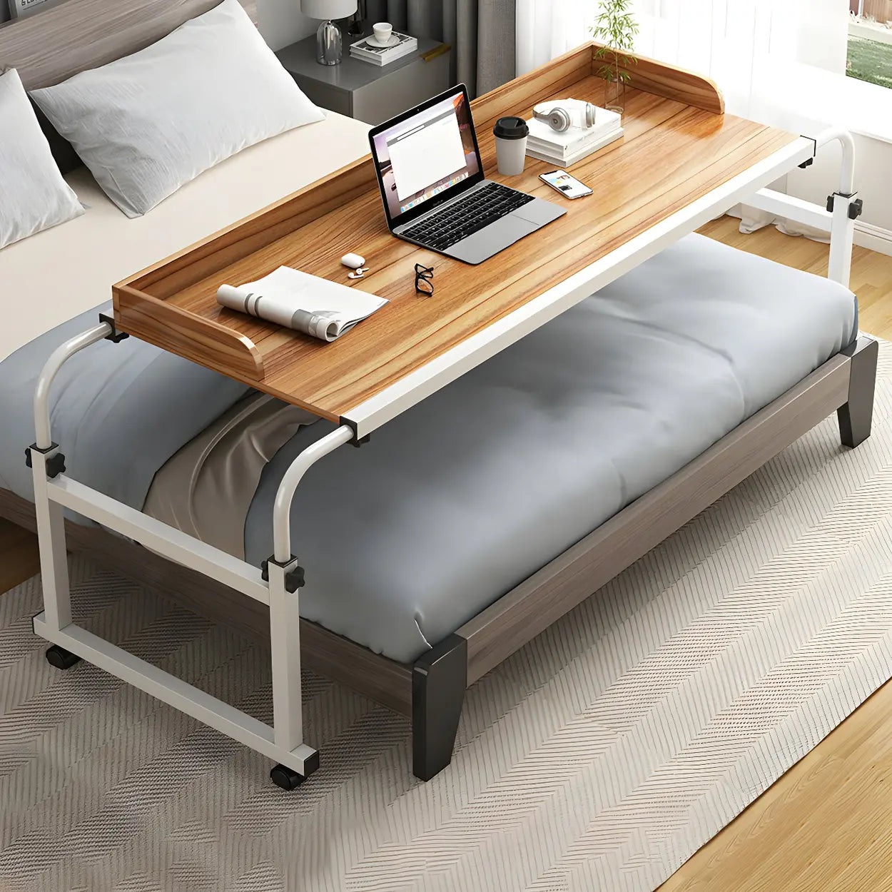 Over-Bed Adjustable Wood Writing Desk with Wheels