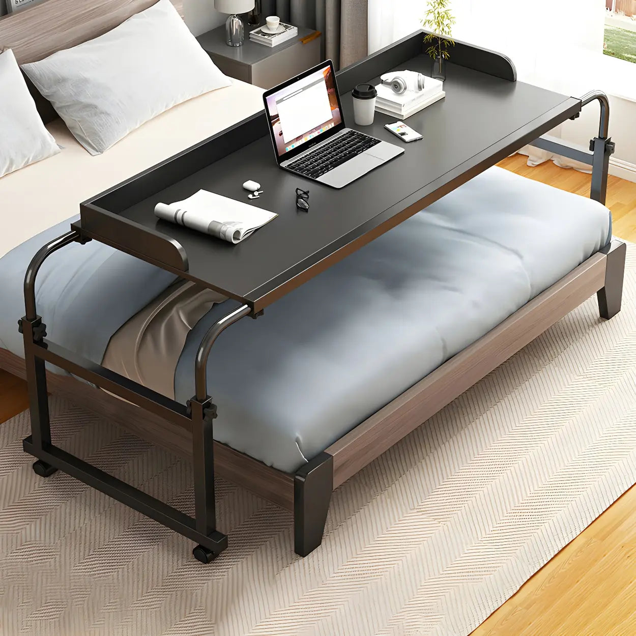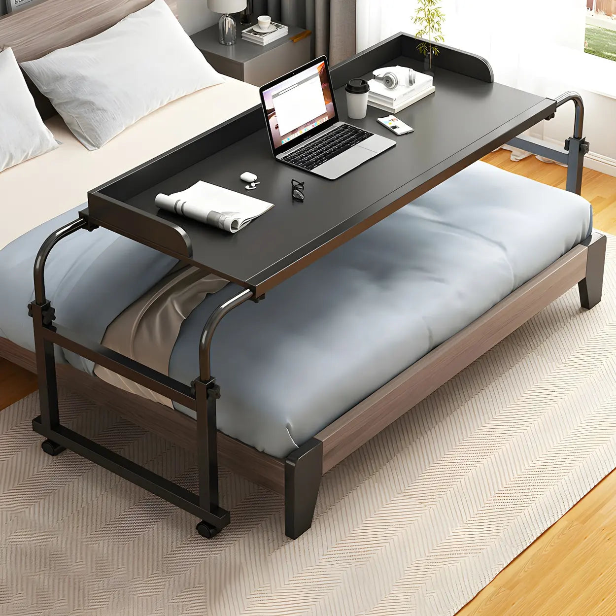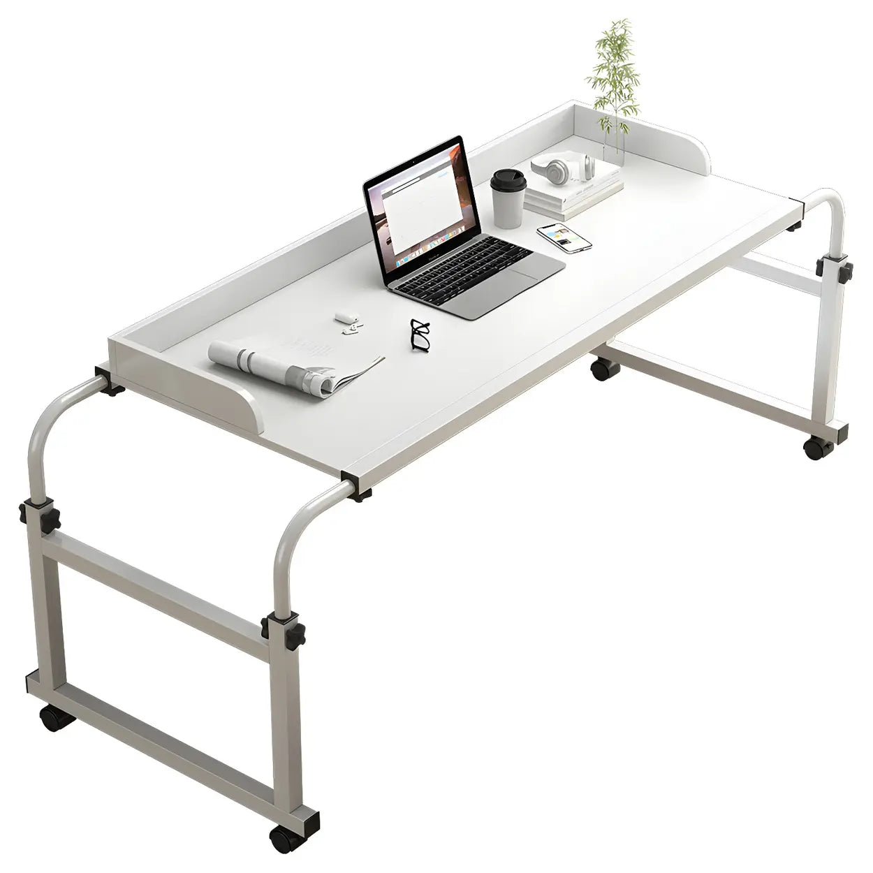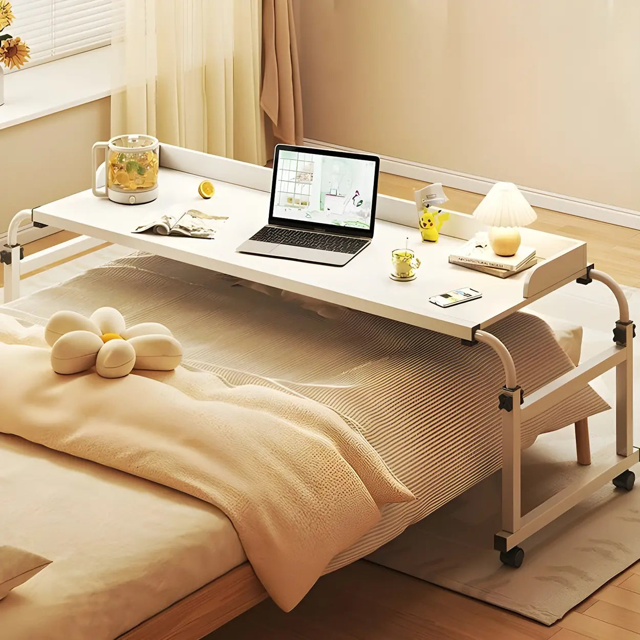 Over-Bed Adjustable Wood Writing Desk with Wheels
