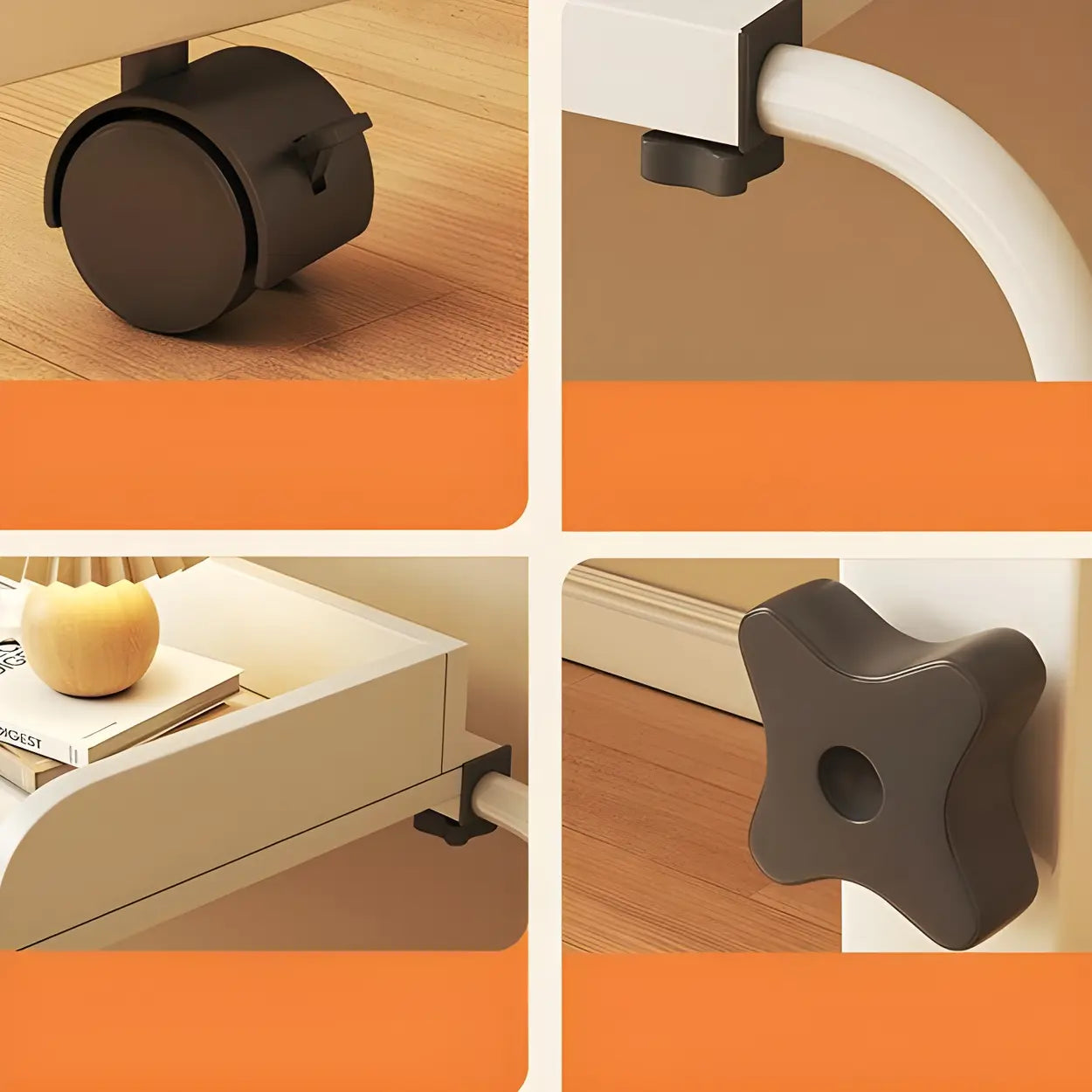Bringing comfort and convenience to your bedroom space, this foldable bedside desk with adjustable height enhances your day-to-day life. Giving a perfect solution if you need to work, study, or relax, it adapts to your needs. With easy mobility, the wheels enable you to position it anywhere in your home. Providing a spacious tabletop, it can accommodate your laptop, books, and other work or entertainment gadgets.