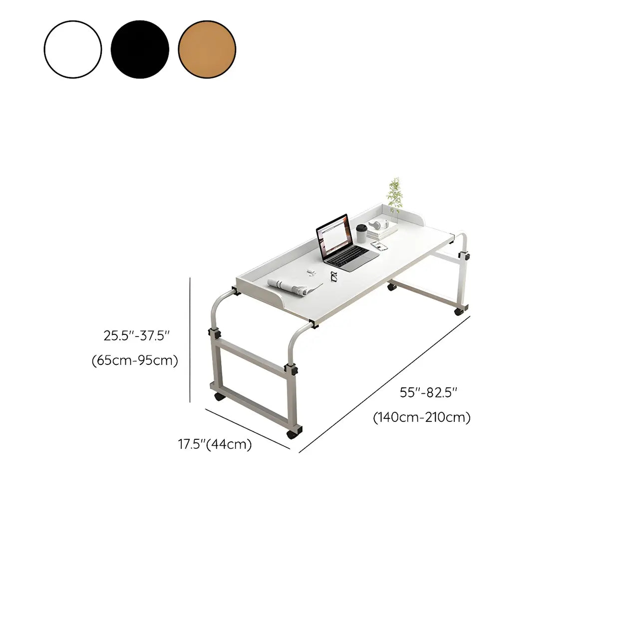 Over-Bed Adjustable Wood Writing Desk with Wheels - 83"L x 17"W x 37"H / Black / Table Only is backordered and will ship as soon as it is back in stock.