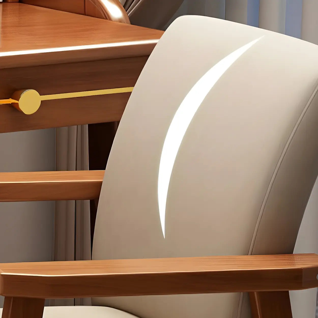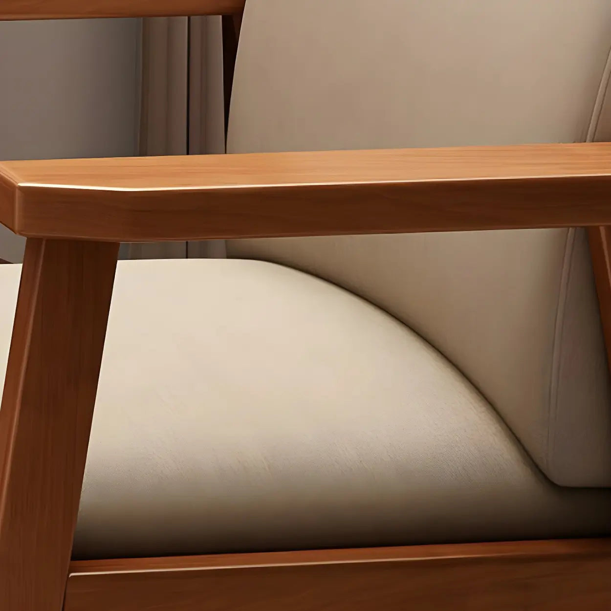 Polyurethane Upholstered Wood Solid Back Arm Chair