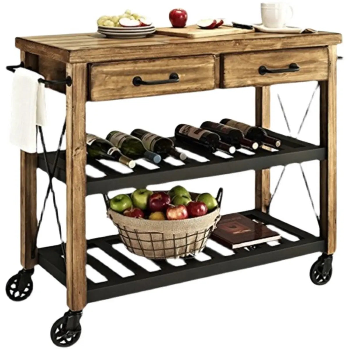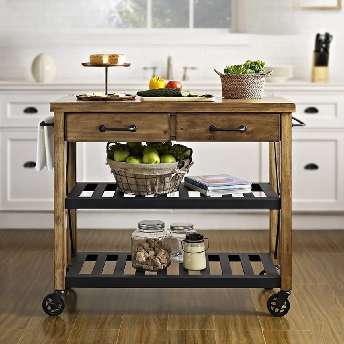 Adopting open shelves and practical drawers, this versatile kitchen cart gives ample storage space. So it is easy to keep your kitchen tidy. The wheels make it smooth to move around, making it convenient for dining. If you need extra prep space or a mobile dining cart, this cart has you covered.