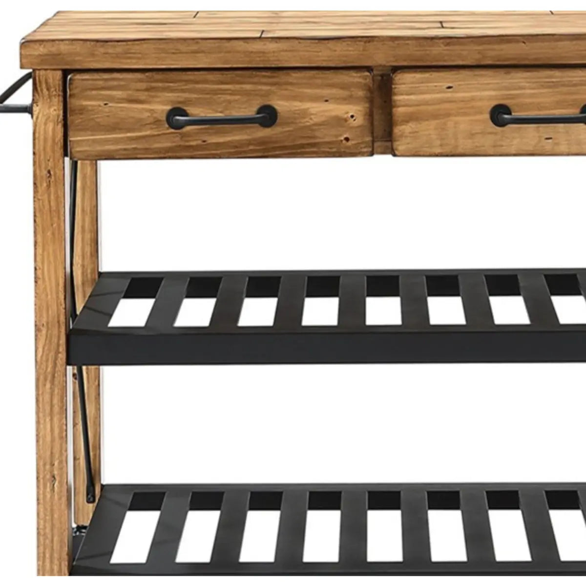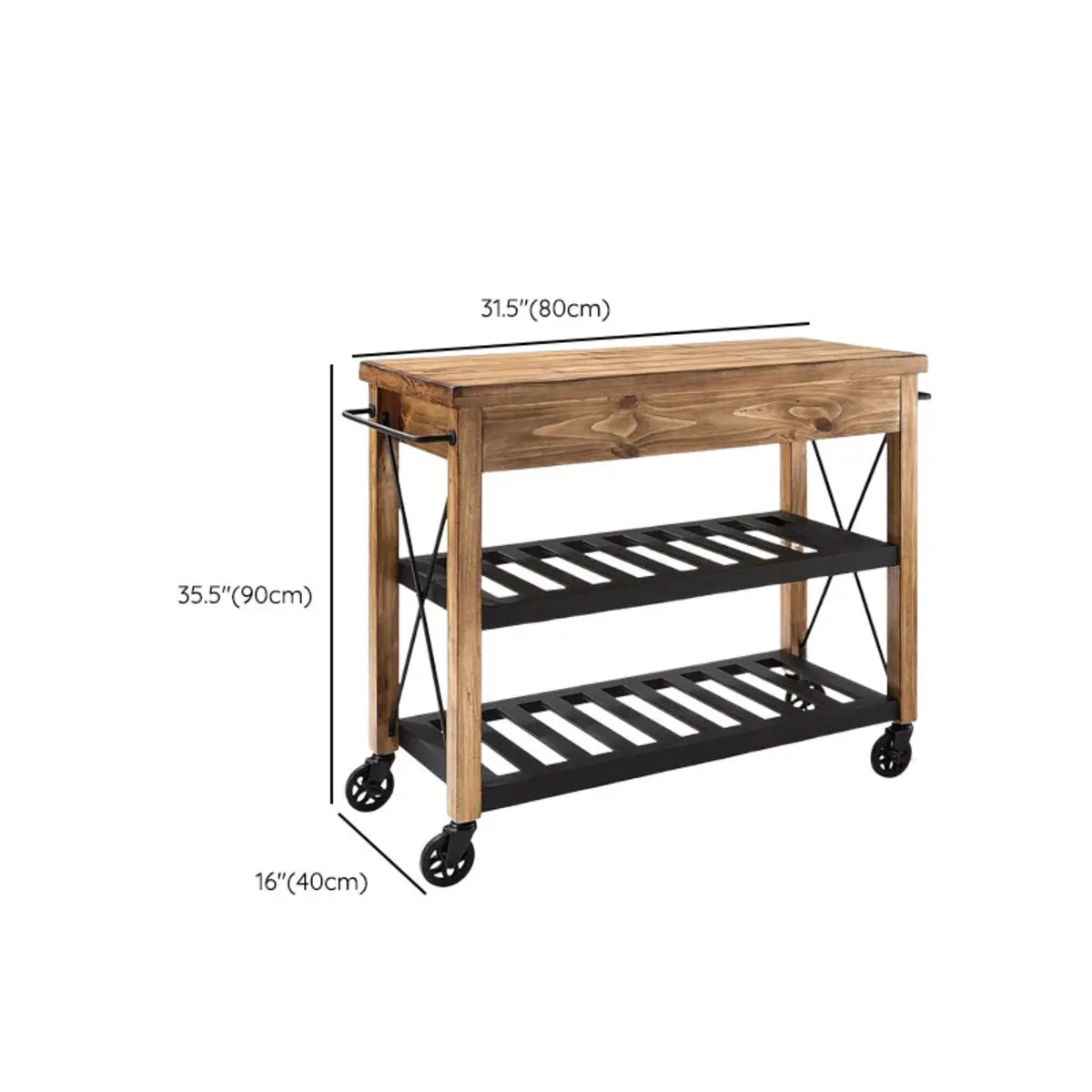 Portable Rectangular Brown Wood Kitchen Cart with Shelves