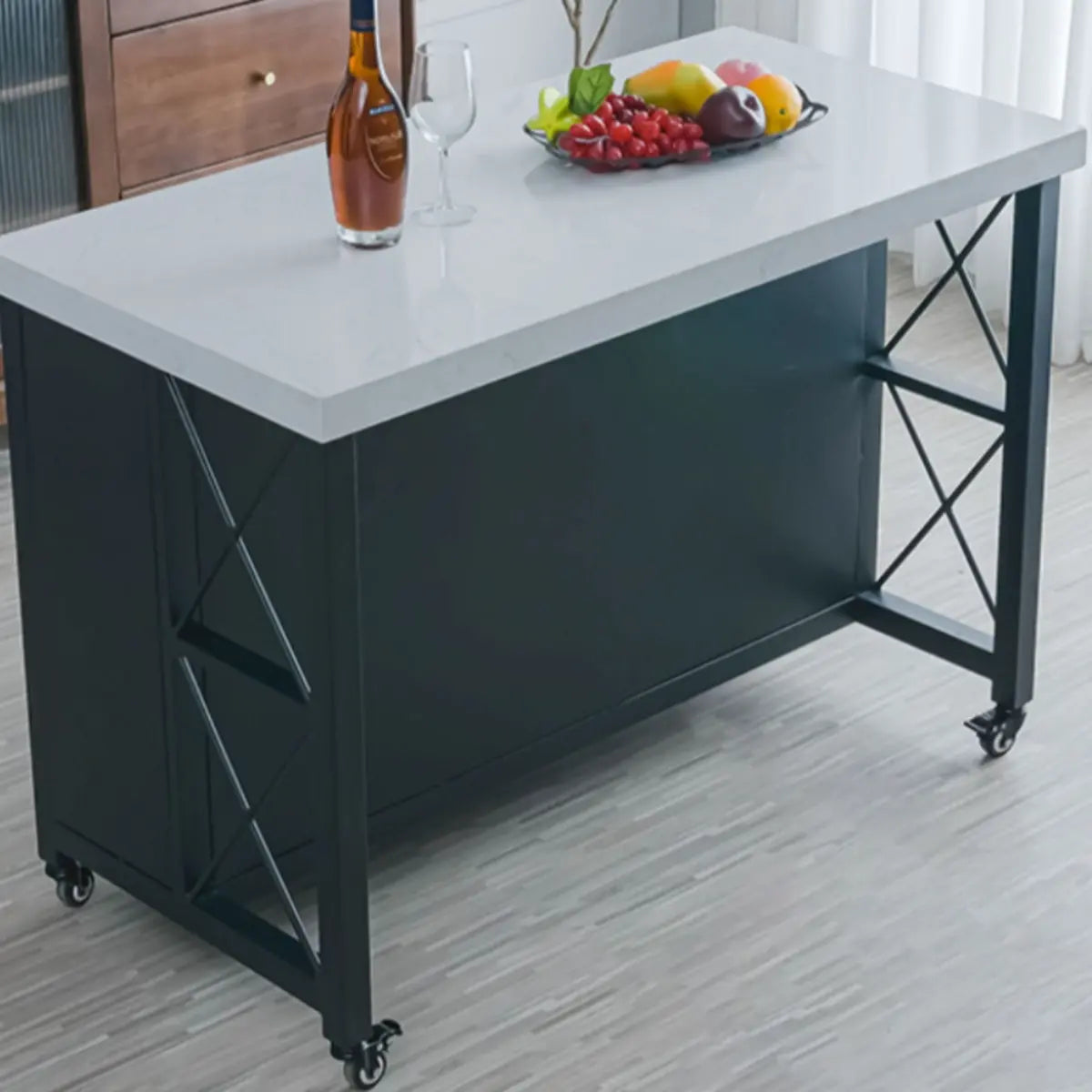 Portable Rectangular Marble Black Island with Wheels