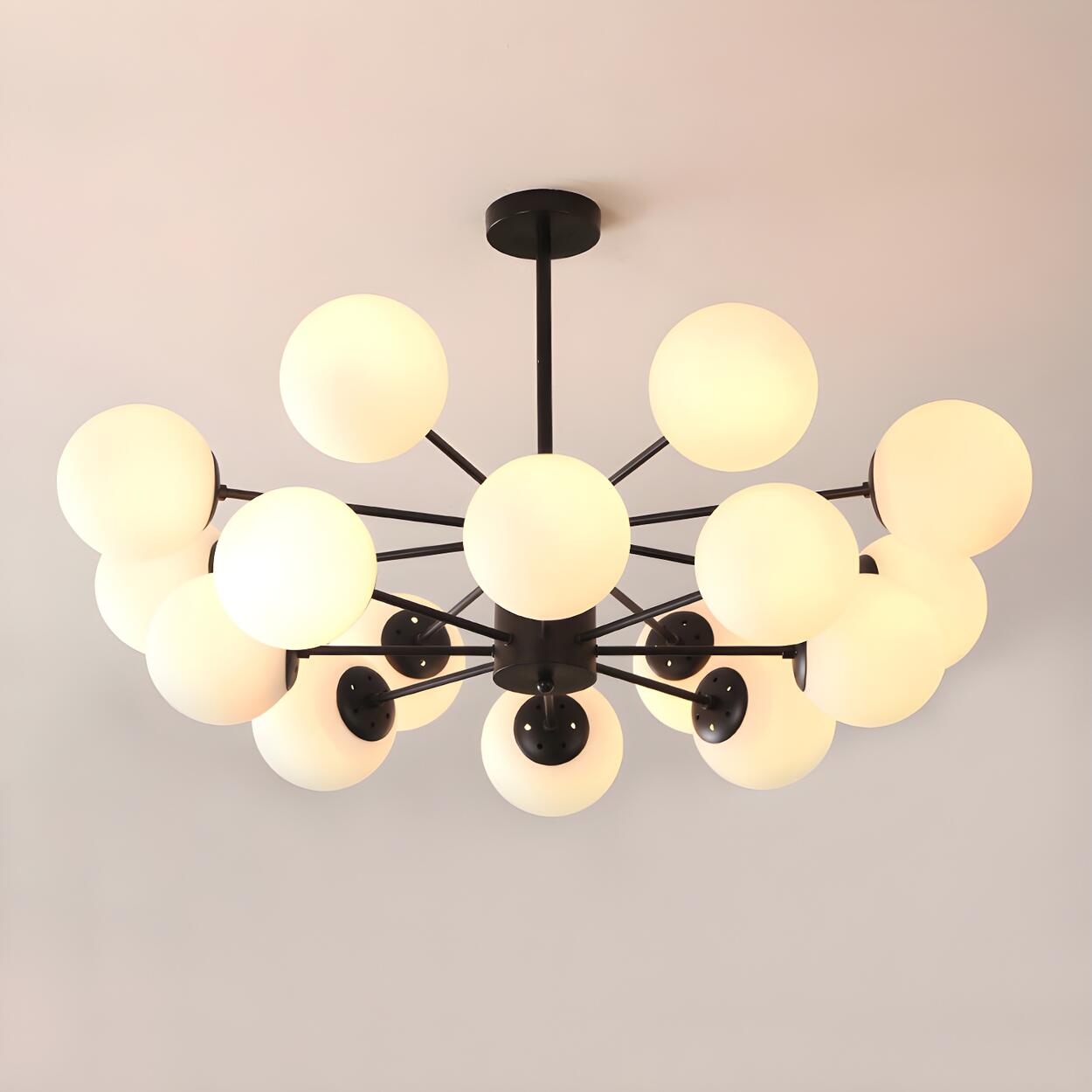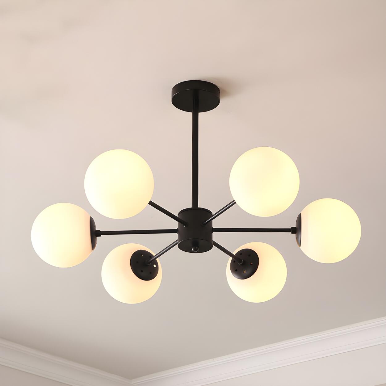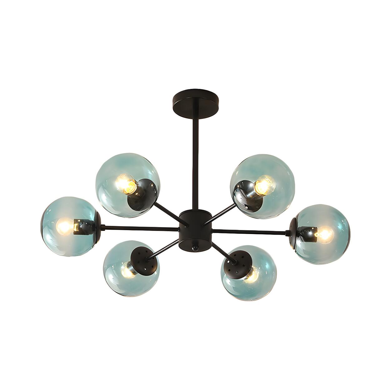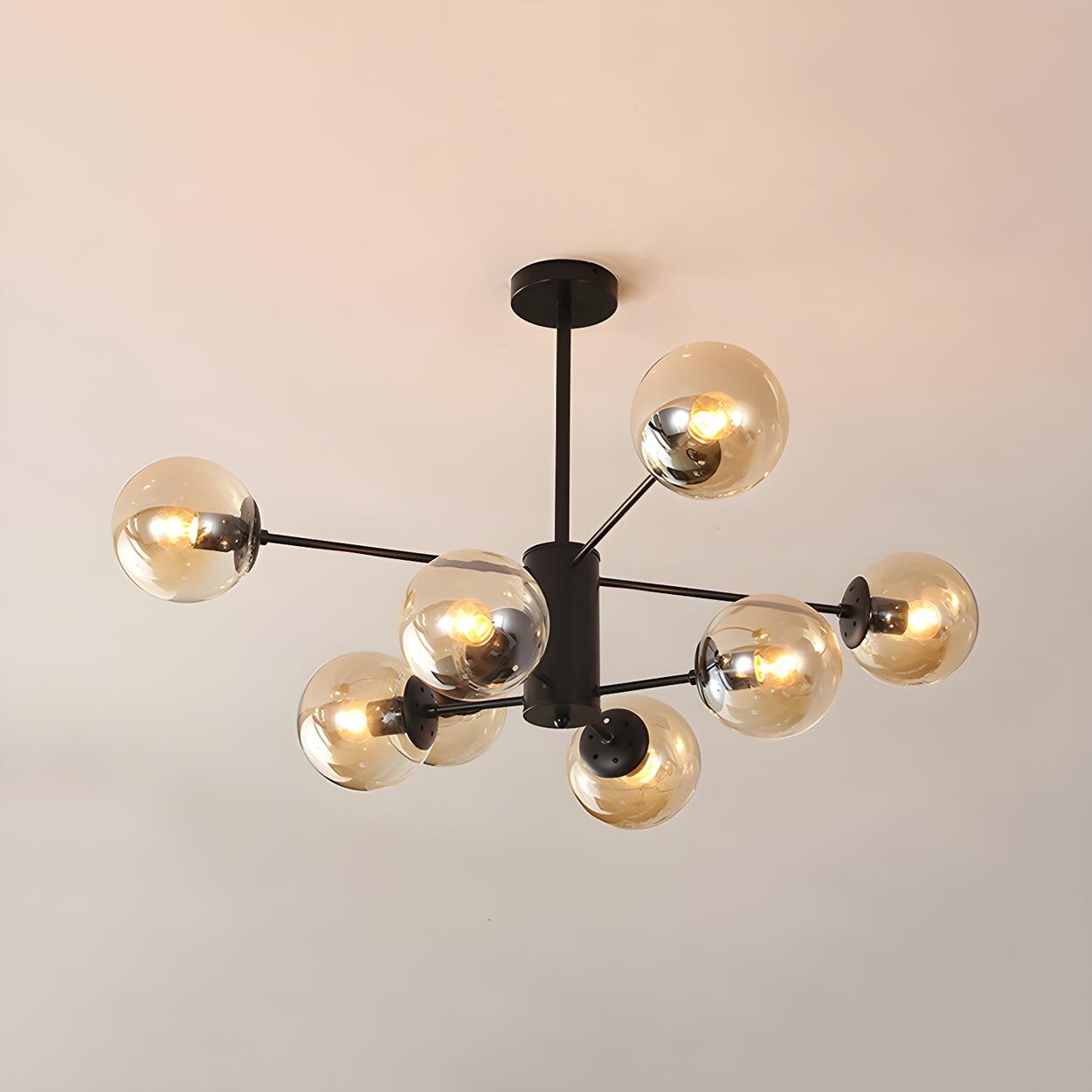 Post Modern 6-Light Amber Glass Globes Black Chandelier