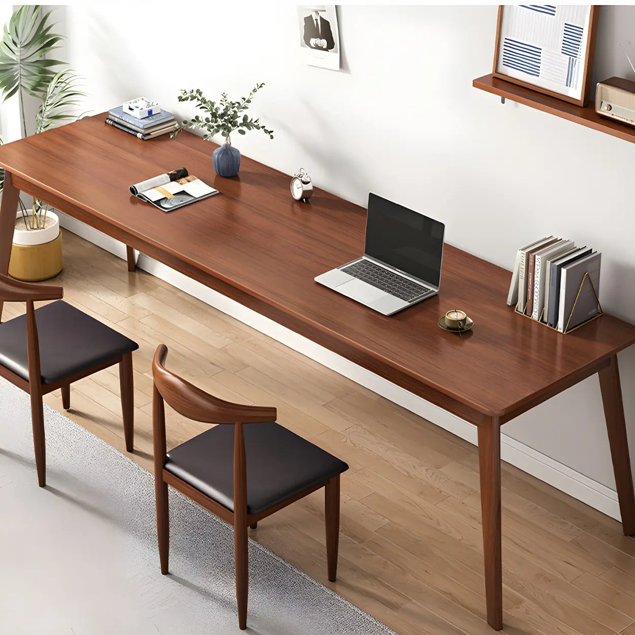 Adding sophistication and practicality to your office, this desk features amazing solid wood composition and classic rectangular design. Creating a spacious workspace, the vast desktop is best suited for teamwork as well as solo project activities. The wood grain in dark brown highlights the natural look and has very high durability, and is forever-lasting.