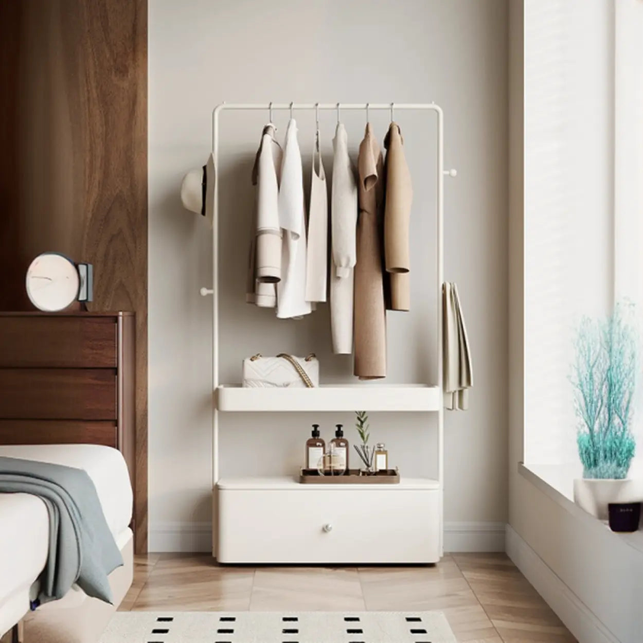 Rectangle Metal Bedroom Off-White Drawers Shelves Coat Rack